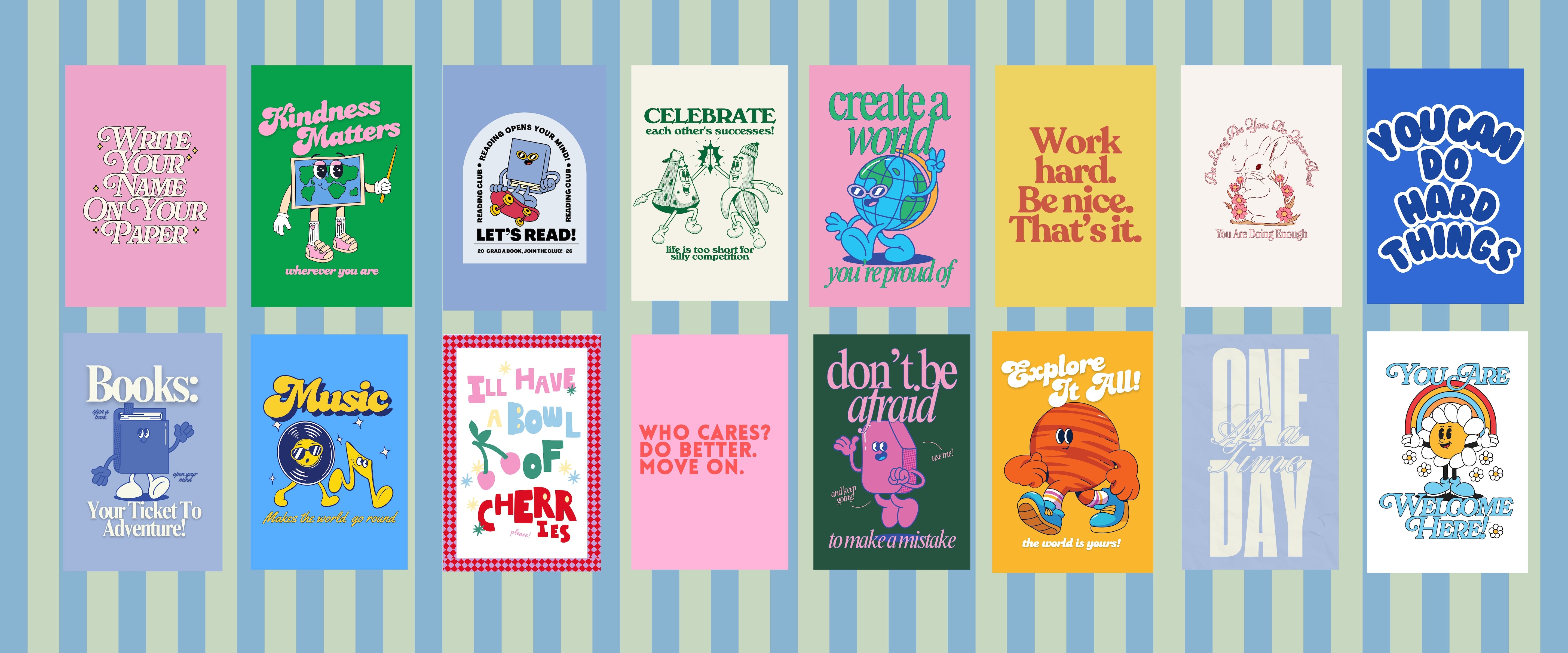 Gallery Wall Set of 15 Kids and Classroom Digital Art Prints