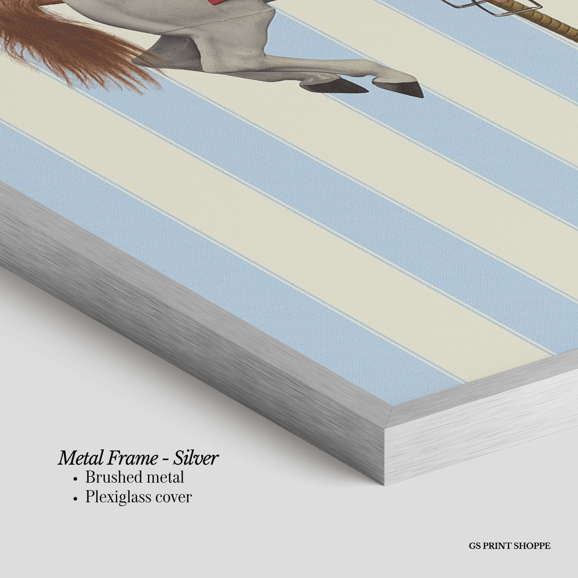 Metal Frame: Sleek and modern, our metal frame is crafted with brushed metal for a polished finish. It comes with durable plexiglass and sturdy metal hangers for horizontal or vertical display.