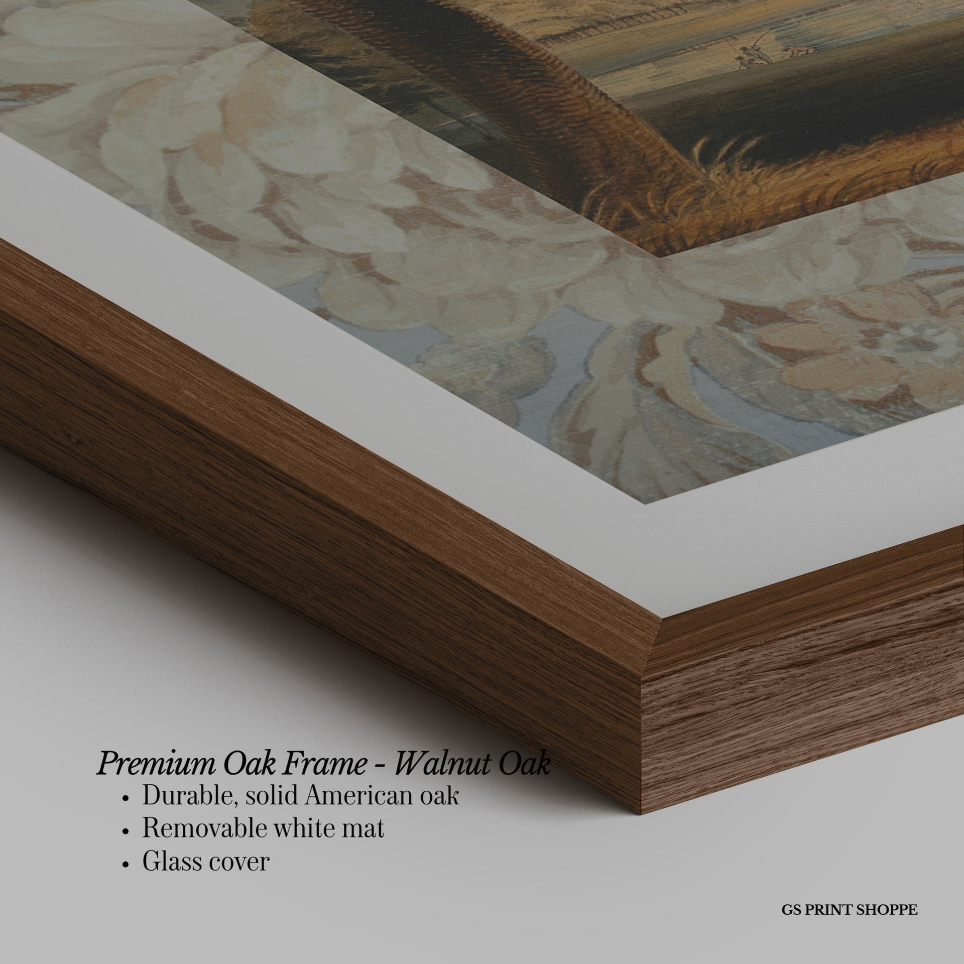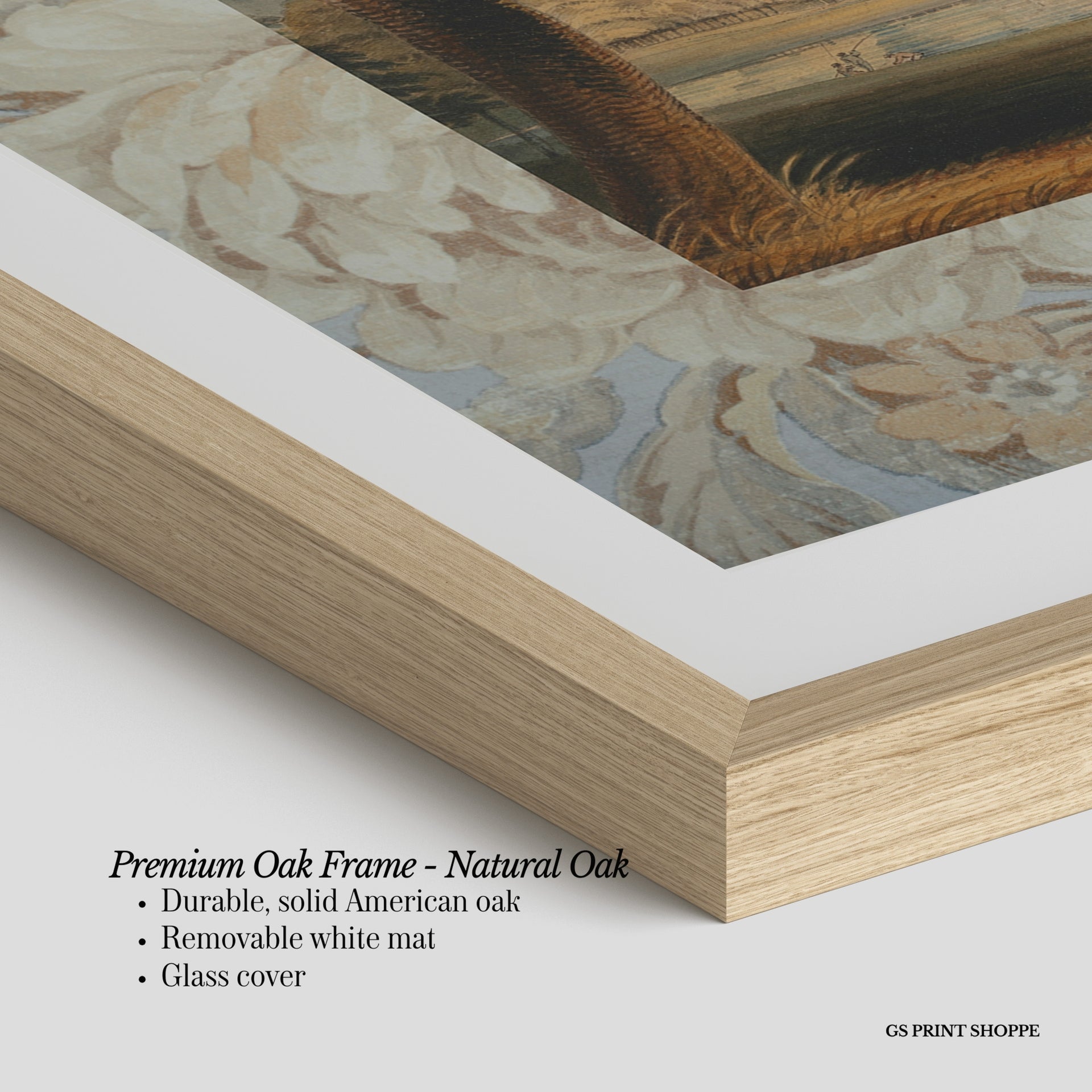 Premium Oak Frame: Our premium oak frame is crafted from solid American oak, offering a warm, natural feel with a high-end finish. We complete this elevated offering with a bright white removable mat and real glass for a versatile and polished look.