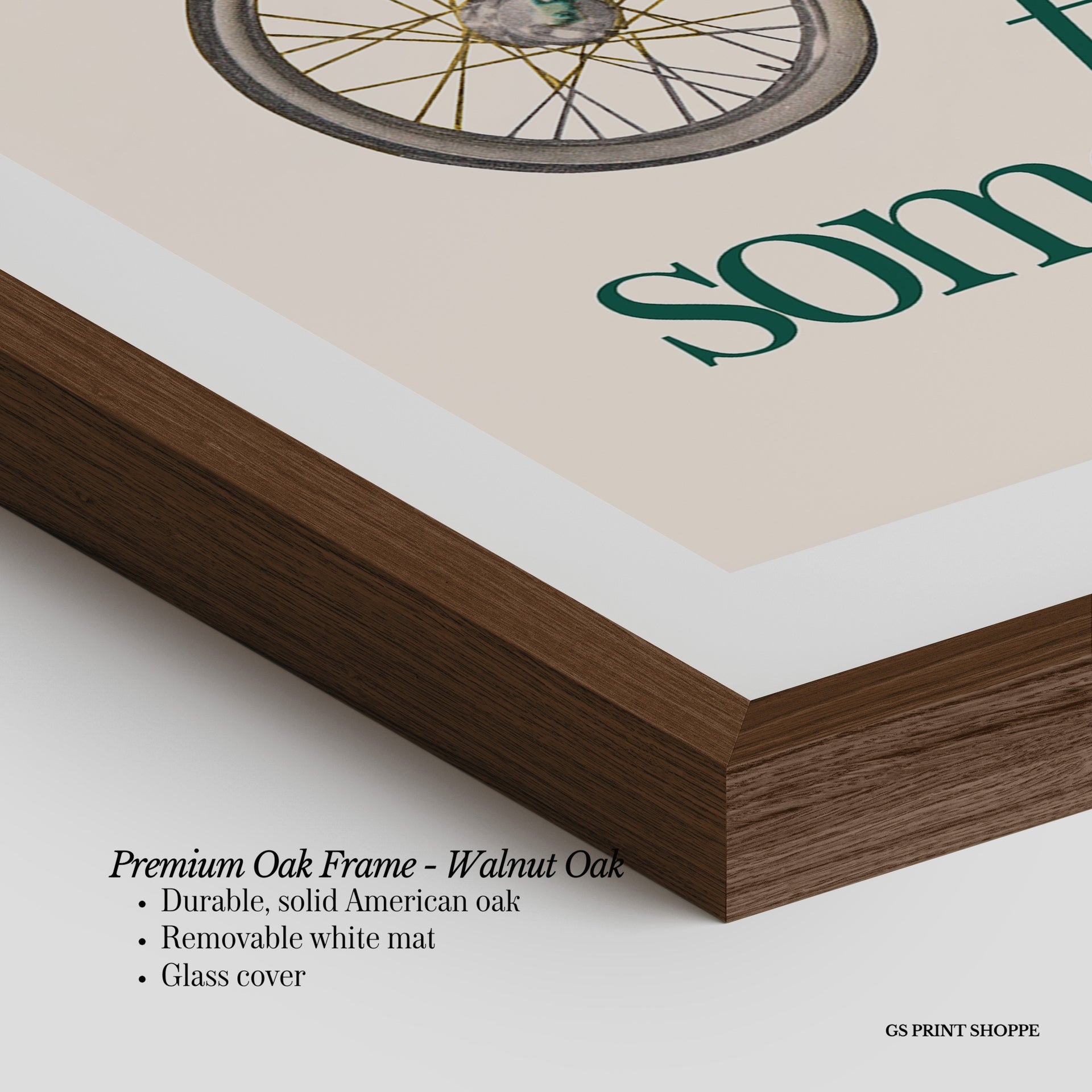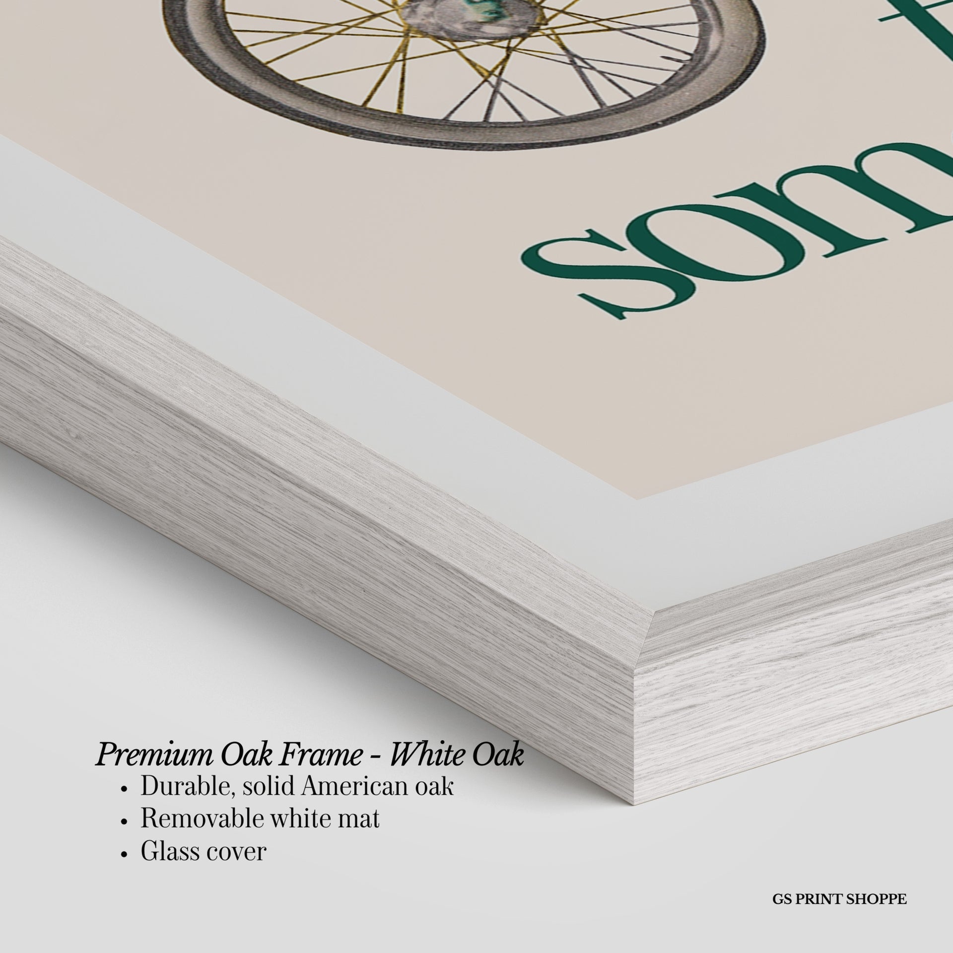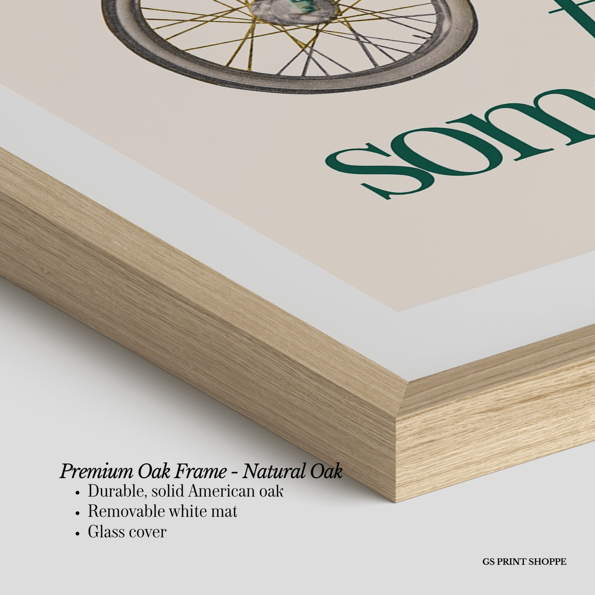 Premium Oak Frame: Our premium oak frame is crafted from solid American oak, offering a warm, natural feel with a high-end finish. We complete this elevated offering with a bright white removable mat and real glass for a versatile and polished look.