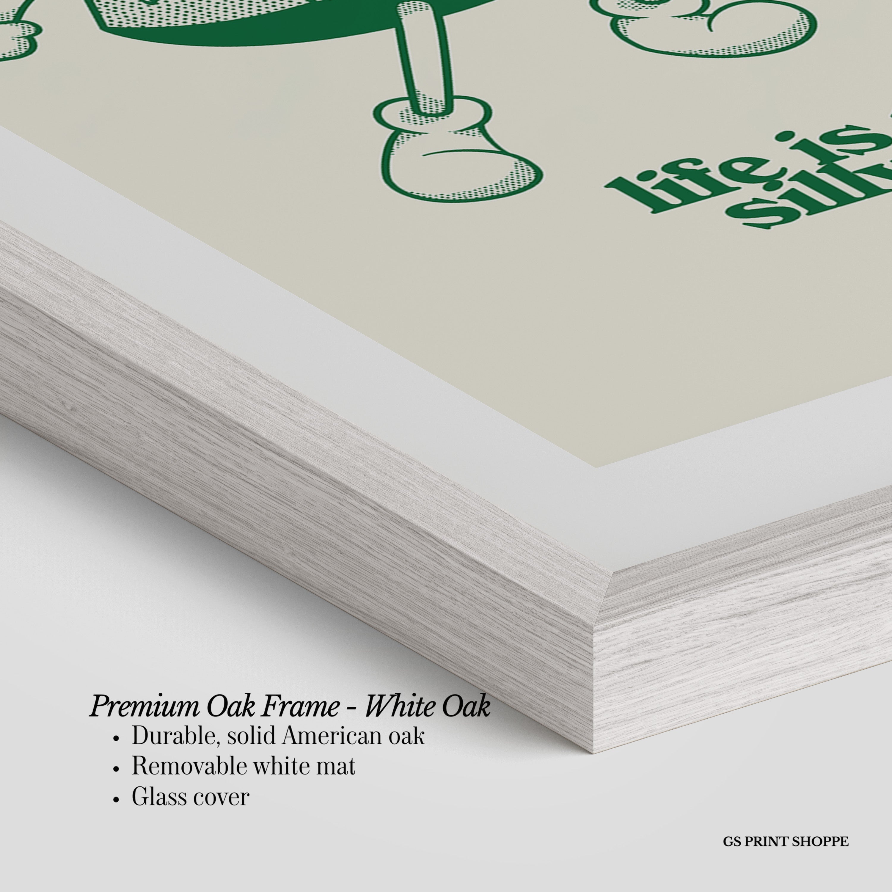 Premium Oak Frame: Our premium oak frame is crafted from solid American oak, offering a warm, natural feel with a high-end finish. We complete this elevated offering with a bright white removable mat and real glass for a versatile and polished look.