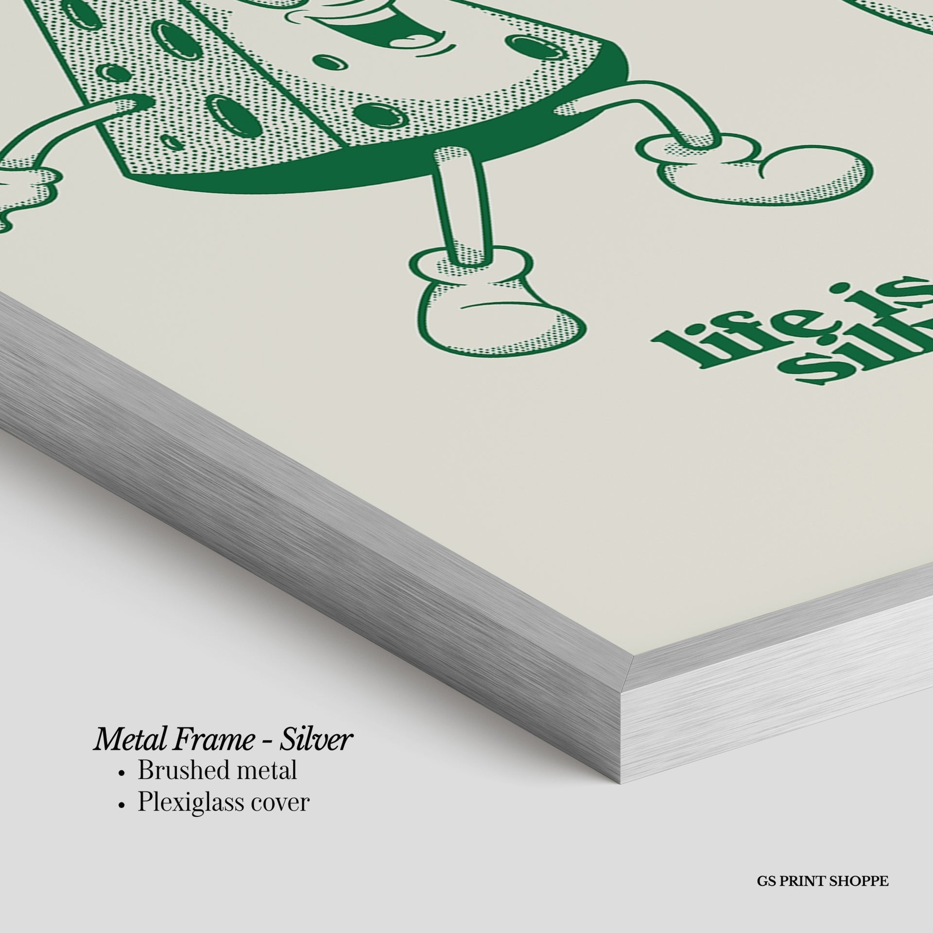 Metal Frame: Sleek and modern, our metal frame is crafted with brushed metal for a polished finish. It comes with durable plexiglass and sturdy metal hangers for horizontal or vertical display.