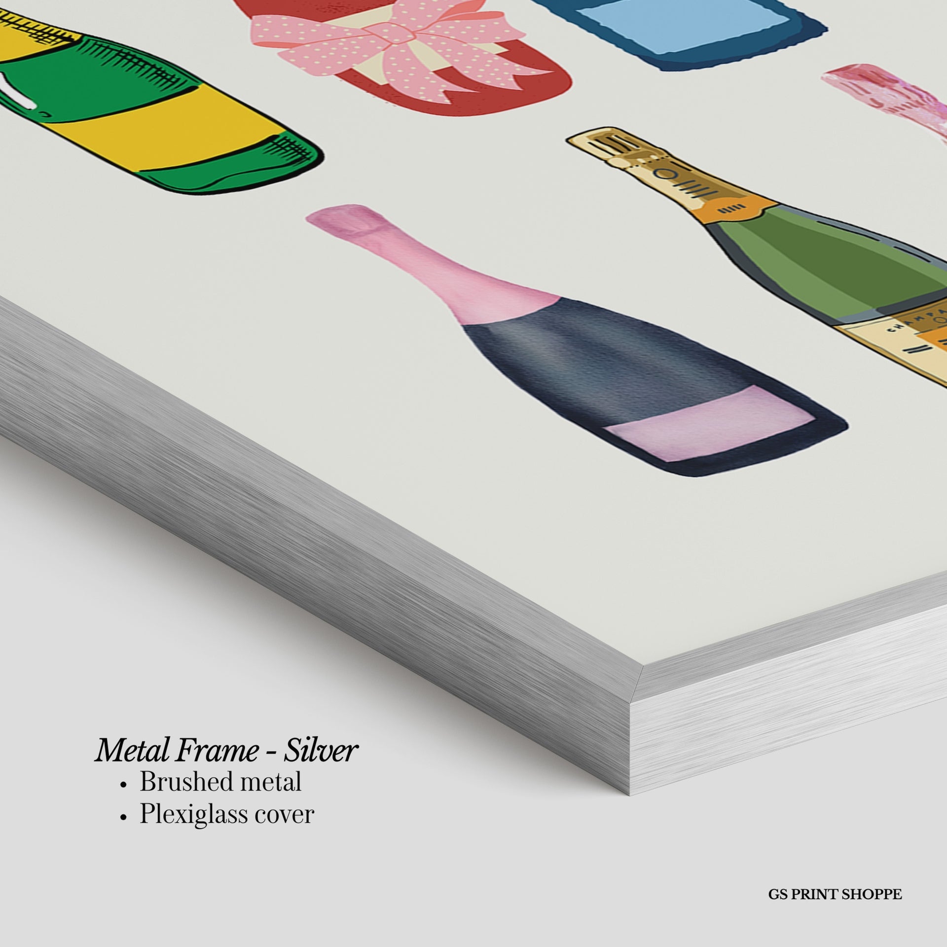 Metal Frame: Sleek and modern, our metal frame is crafted with brushed metal for a polished finish. It comes with durable plexiglass and sturdy metal hangers for horizontal or vertical display.