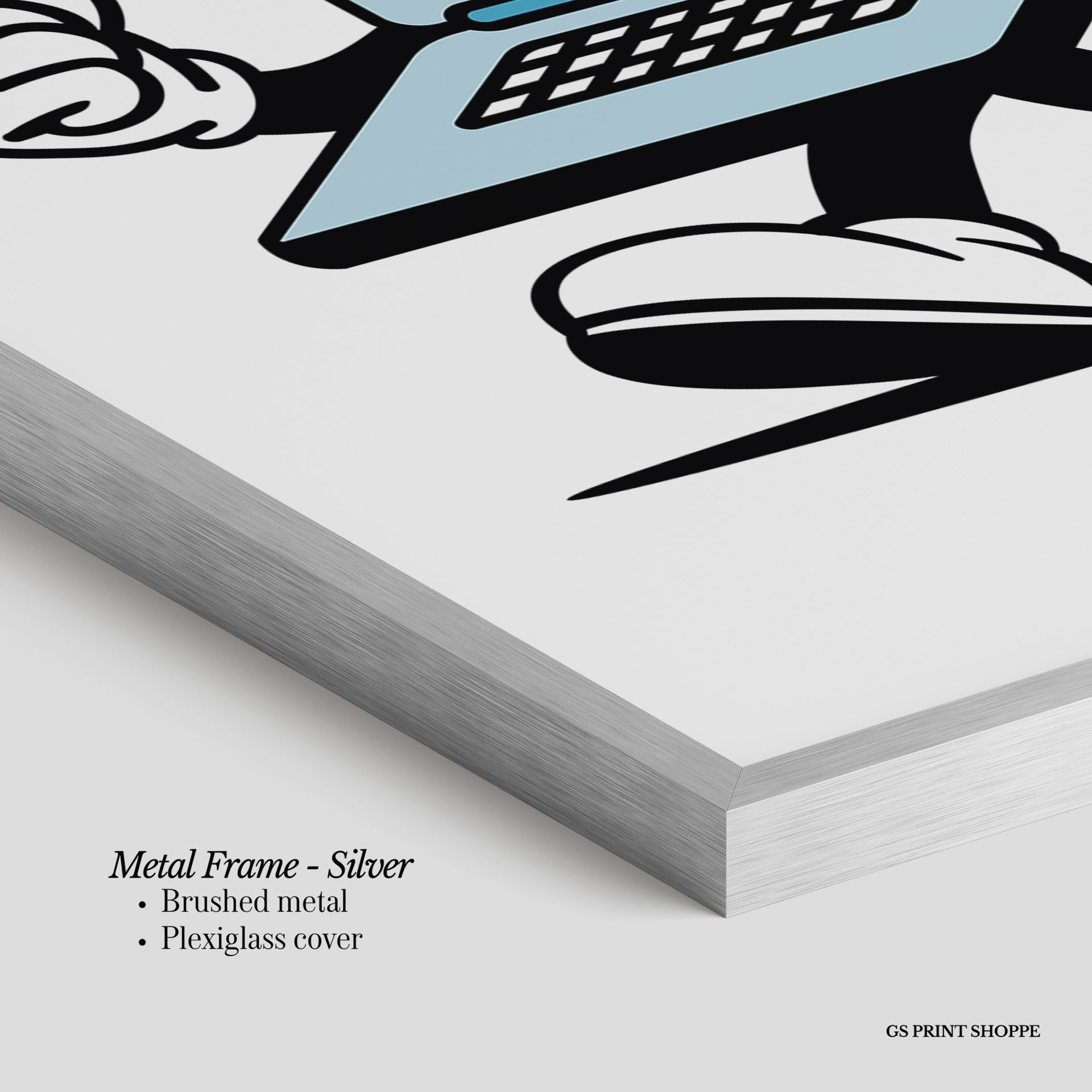 Metal Frame: Sleek and modern, our metal frame is crafted with brushed metal for a polished finish. It comes with durable plexiglass and sturdy metal hangers for horizontal or vertical display.