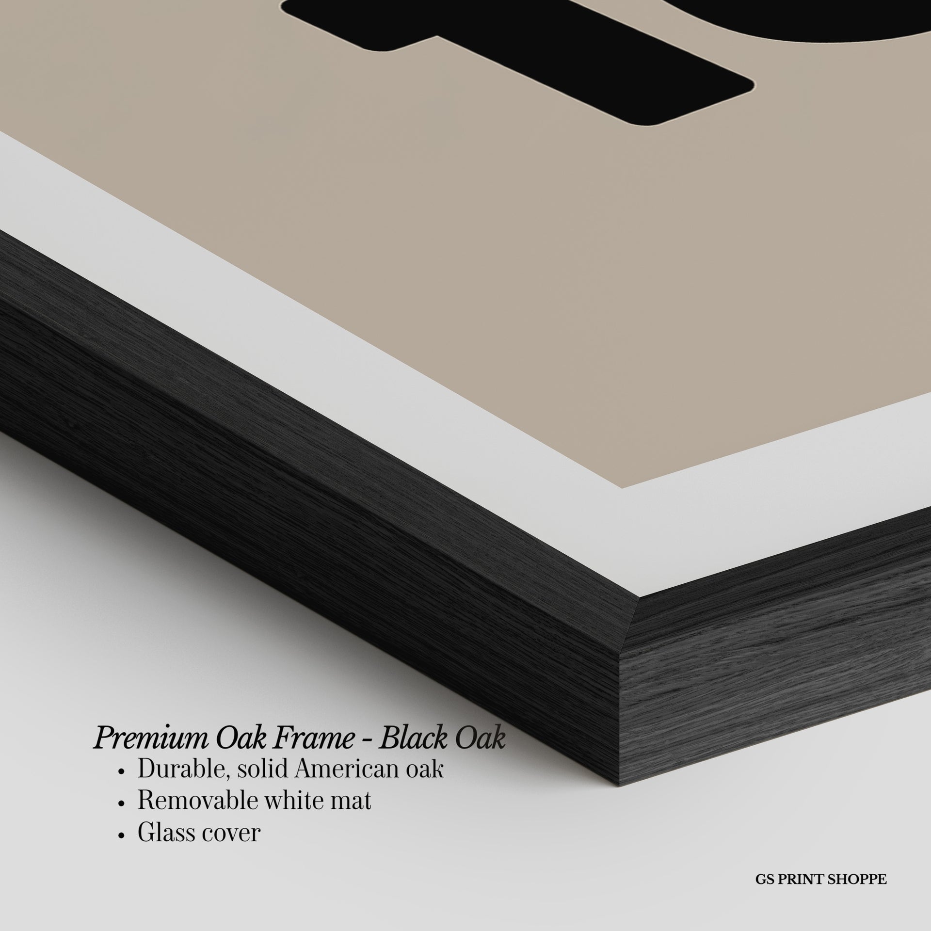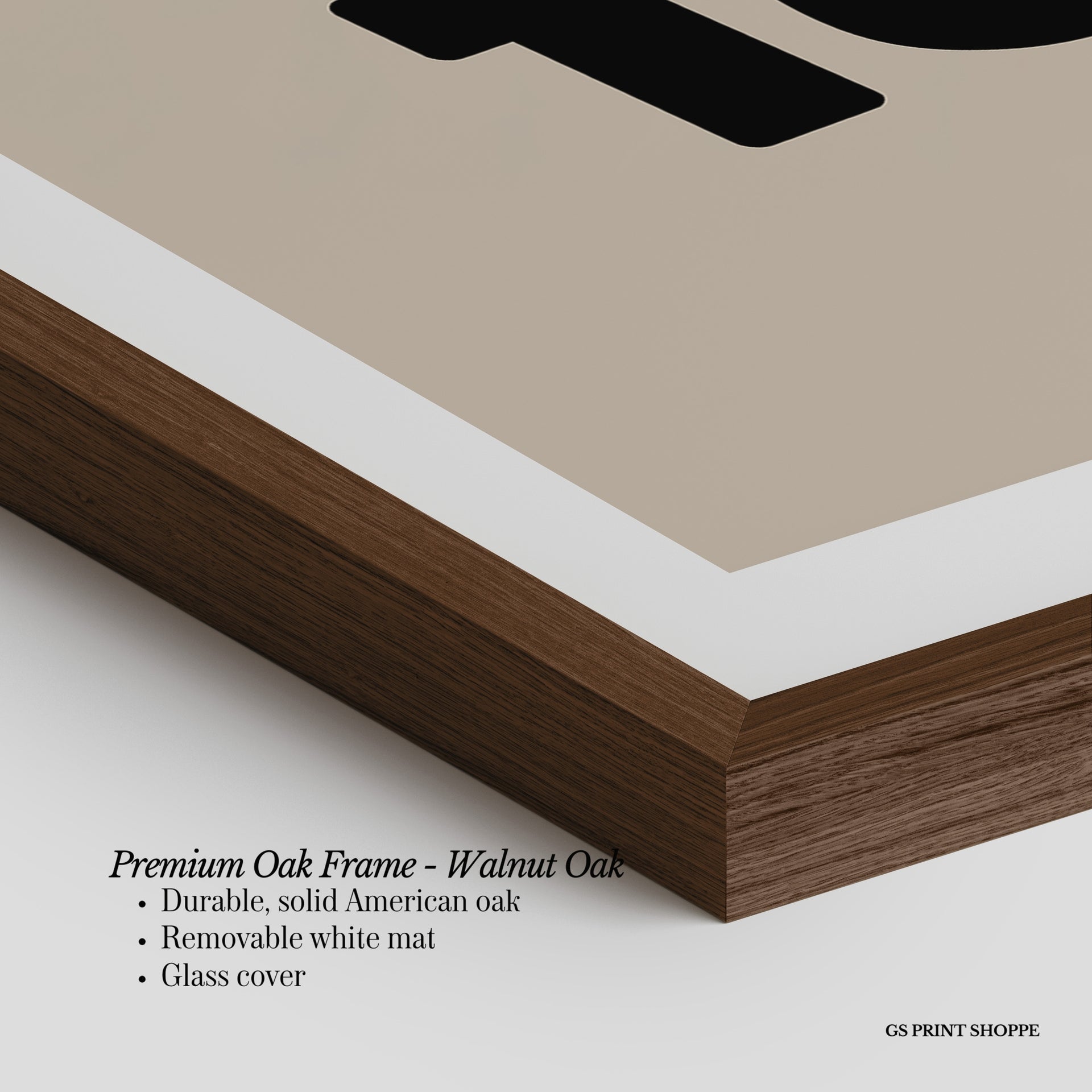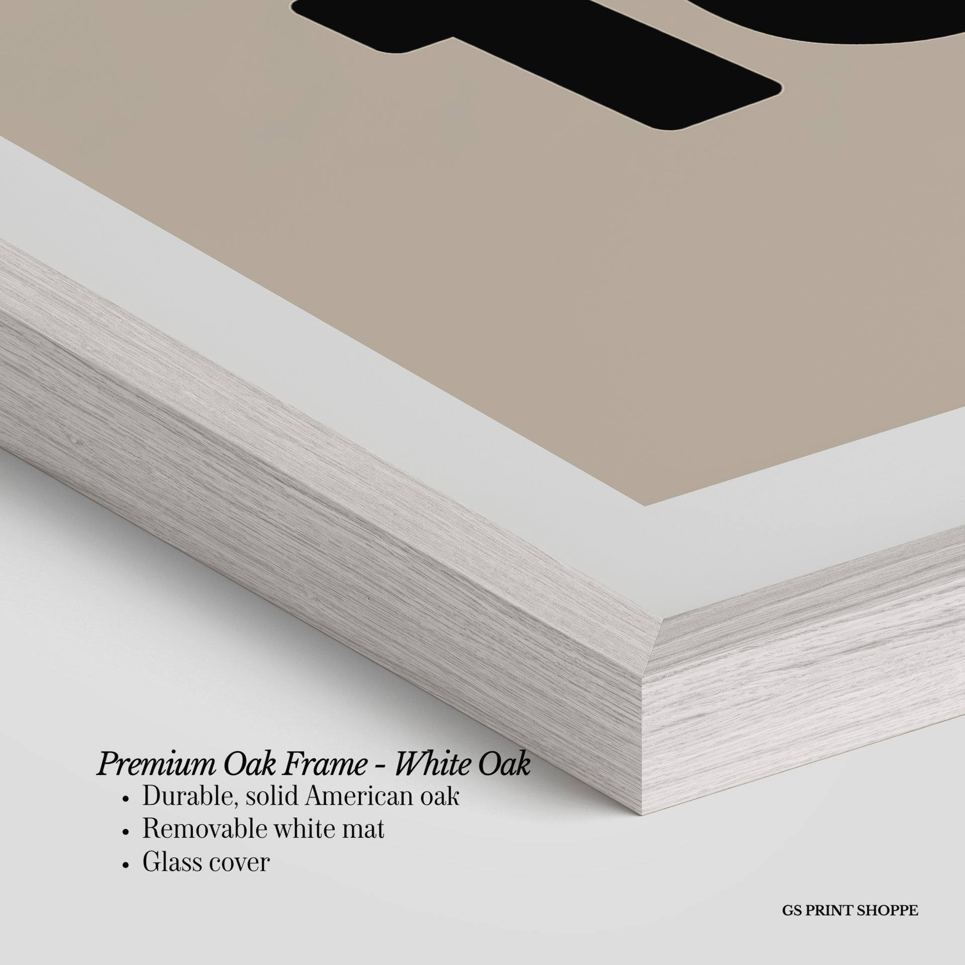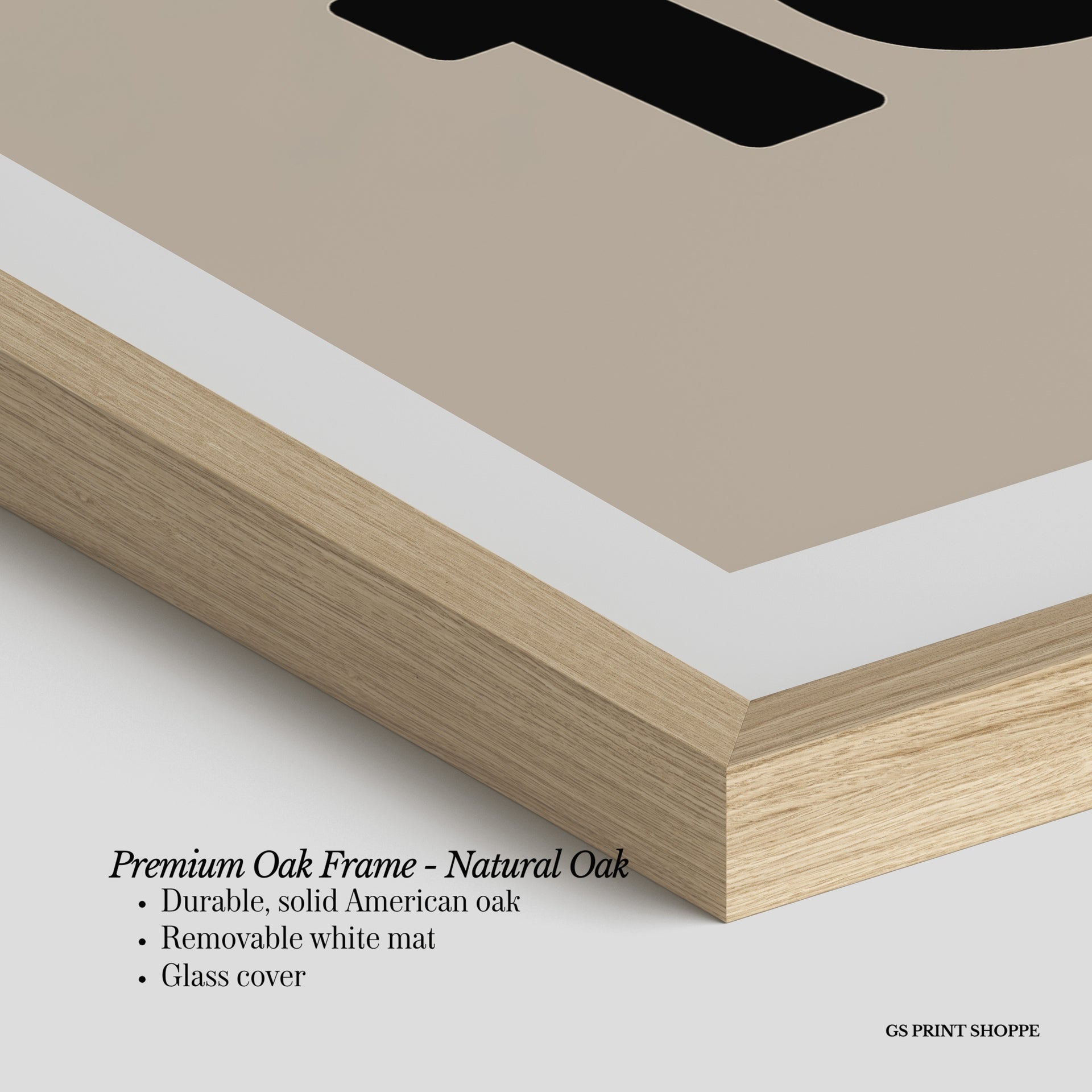 Premium Oak Frame: Our premium oak frame is crafted from solid American oak, offering a warm, natural feel with a high-end finish. We complete this elevated offering with a bright white removable mat and real glass for a versatile and polished look.