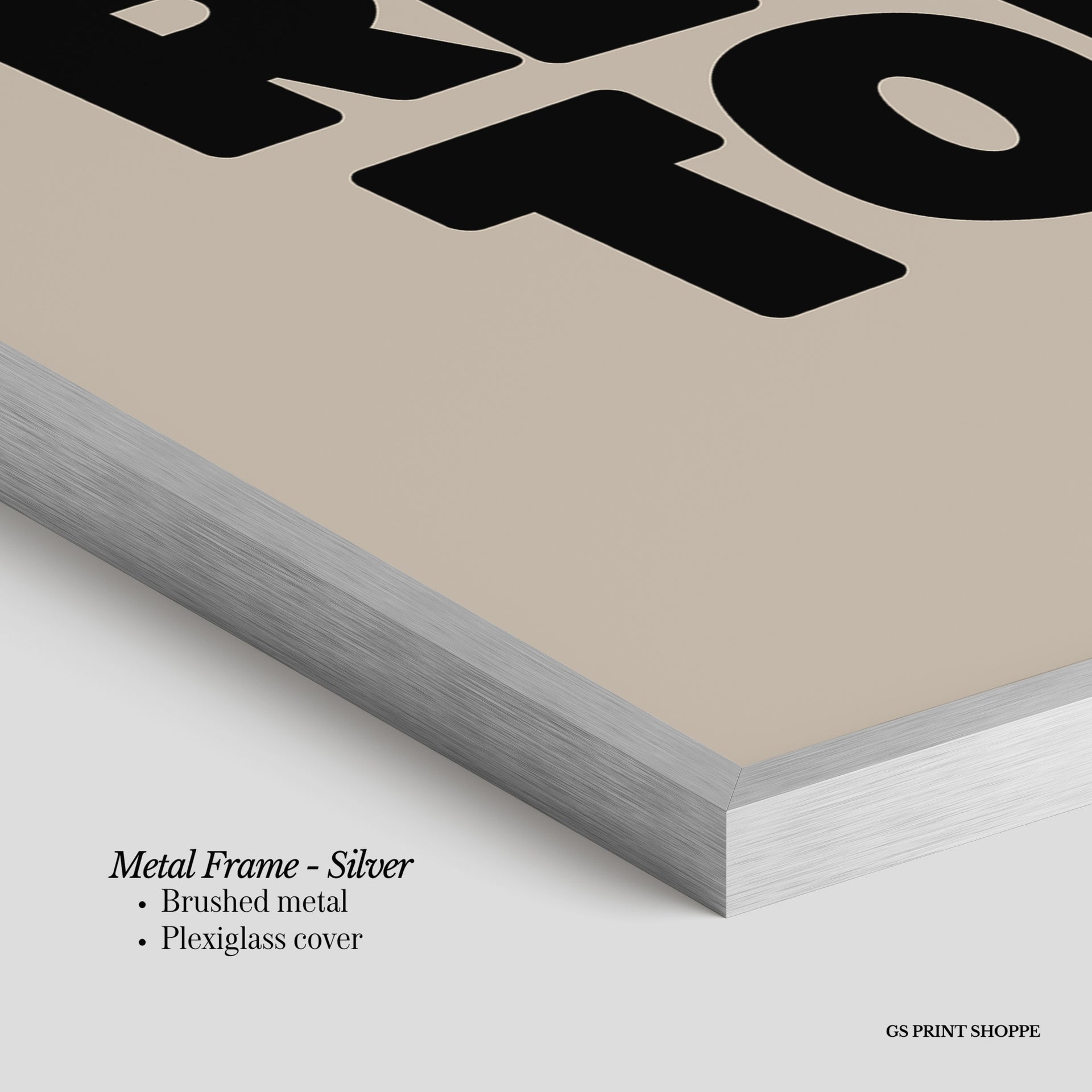 Metal Frame: Sleek and modern, our metal frame is crafted with brushed metal for a polished finish. It comes with durable plexiglass and sturdy metal hangers for horizontal or vertical display.