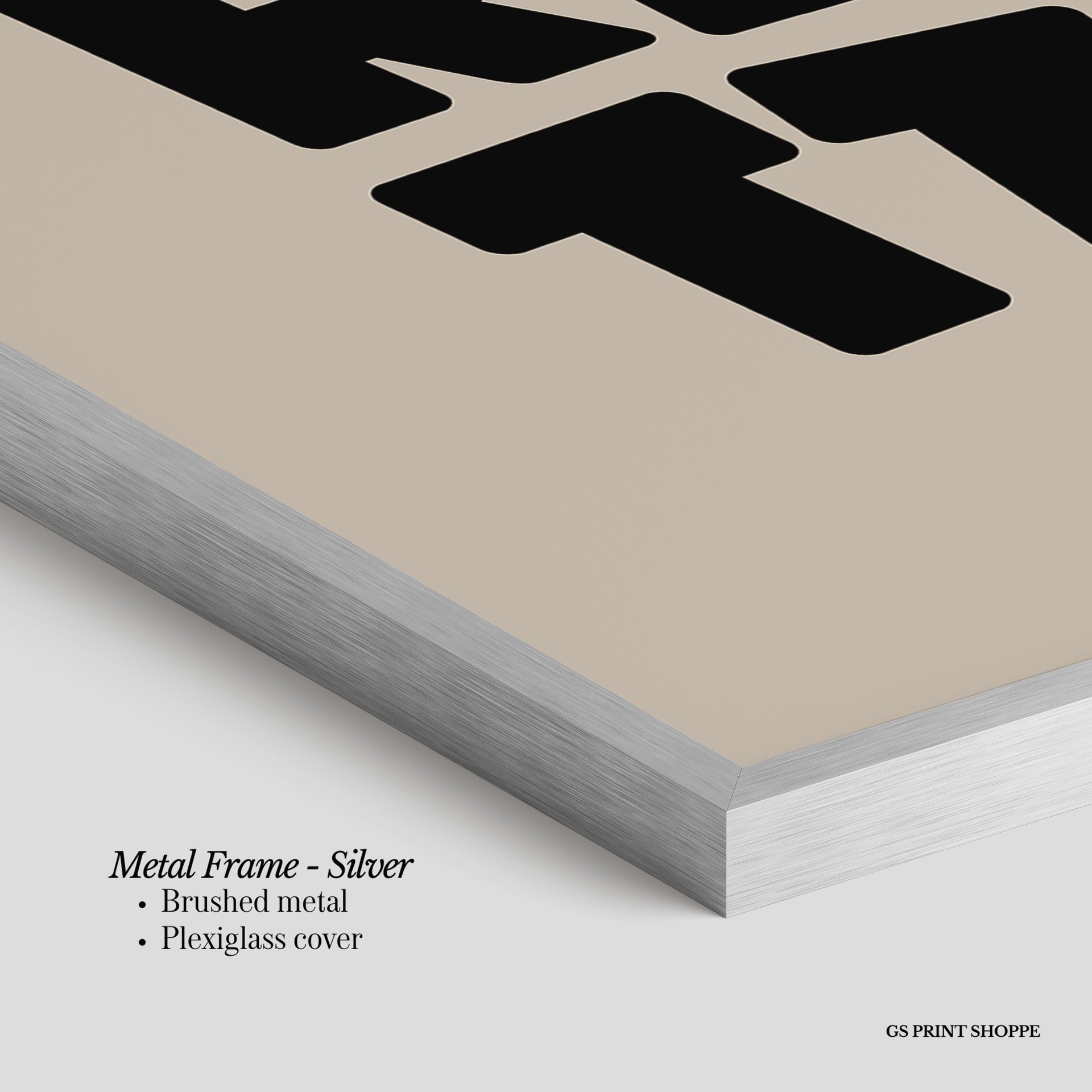 Metal Frame: Sleek and modern, our metal frame is crafted with brushed metal for a polished finish. It comes with durable plexiglass and sturdy metal hangers for horizontal or vertical display.