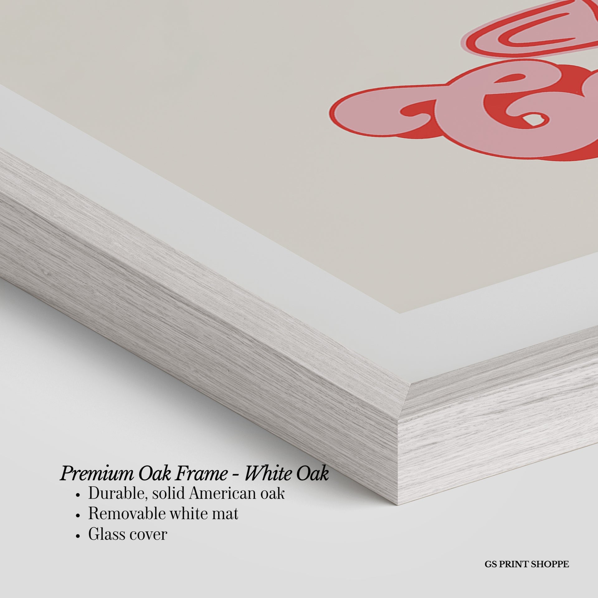 Premium Oak Frame: Our premium oak frame is crafted from solid American oak, offering a warm, natural feel with a high-end finish. We complete this elevated offering with a bright white removable mat and real glass for a versatile and polished look.
