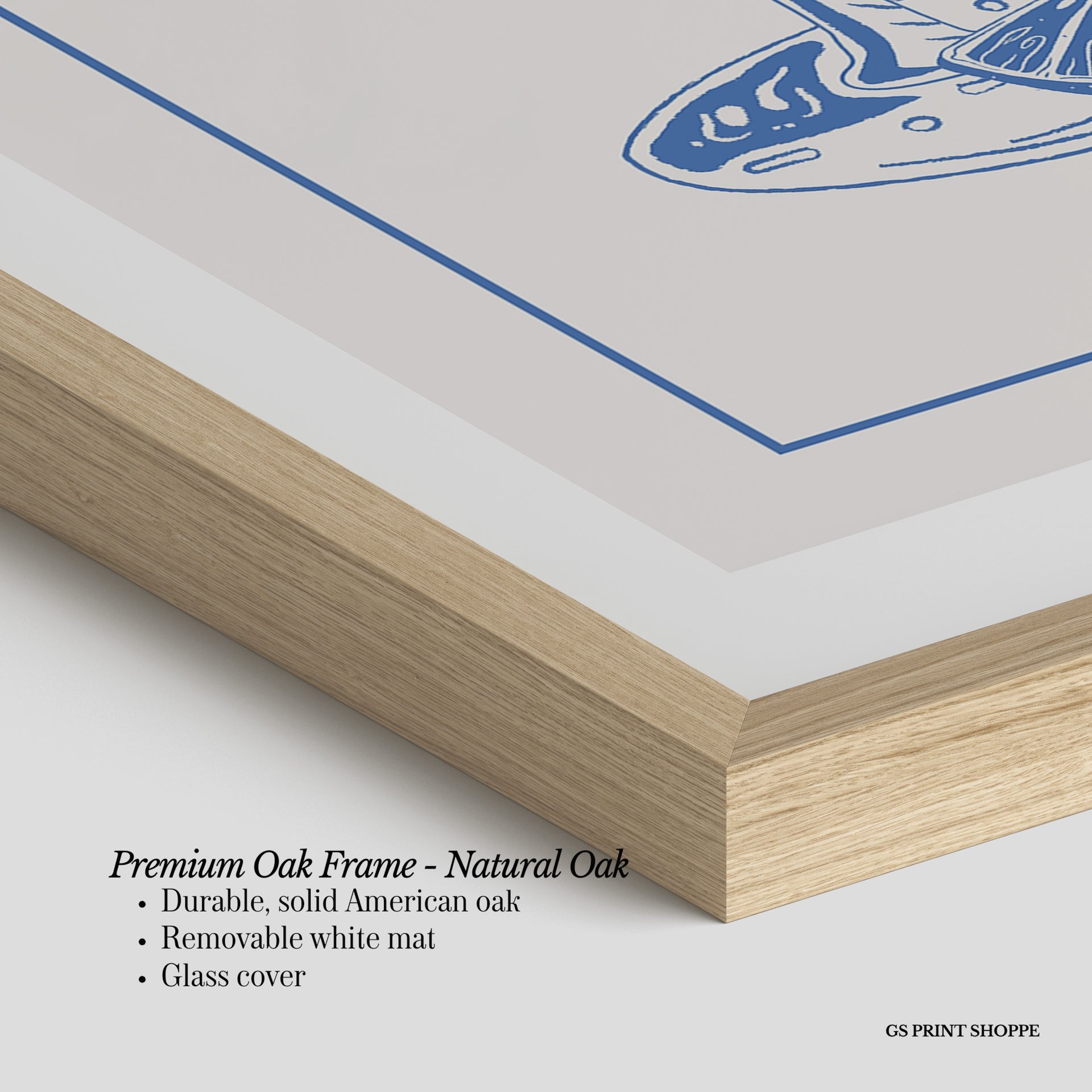 Premium Oak Frame: Our premium oak frame is crafted from solid American oak, offering a warm, natural feel with a high-end finish. We complete this elevated offering with a bright white removable mat and real glass for a versatile and polished look.
