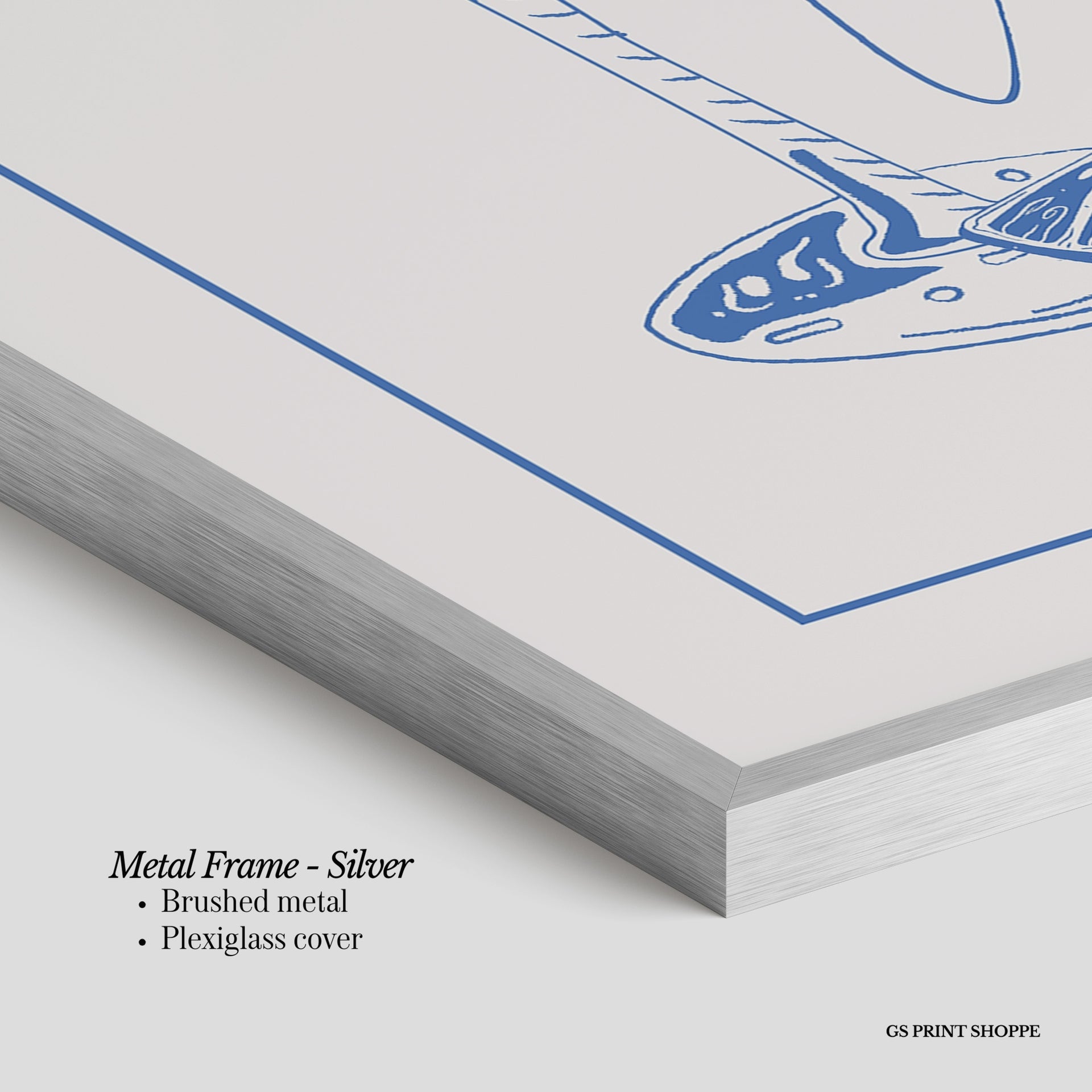 Metal Frame: Sleek and modern, our metal frame is crafted with brushed metal for a polished finish. It comes with durable plexiglass and sturdy metal hangers for horizontal or vertical display.