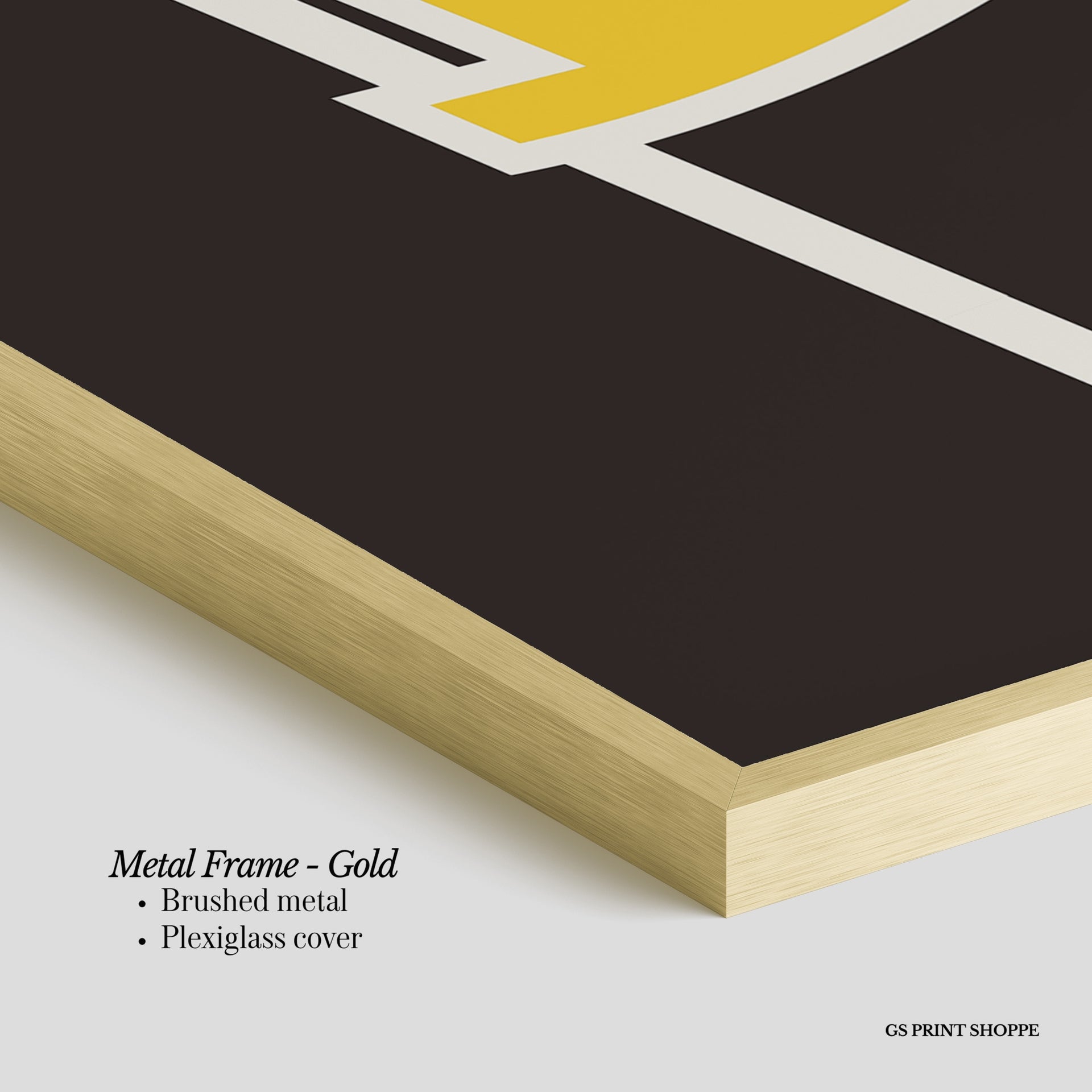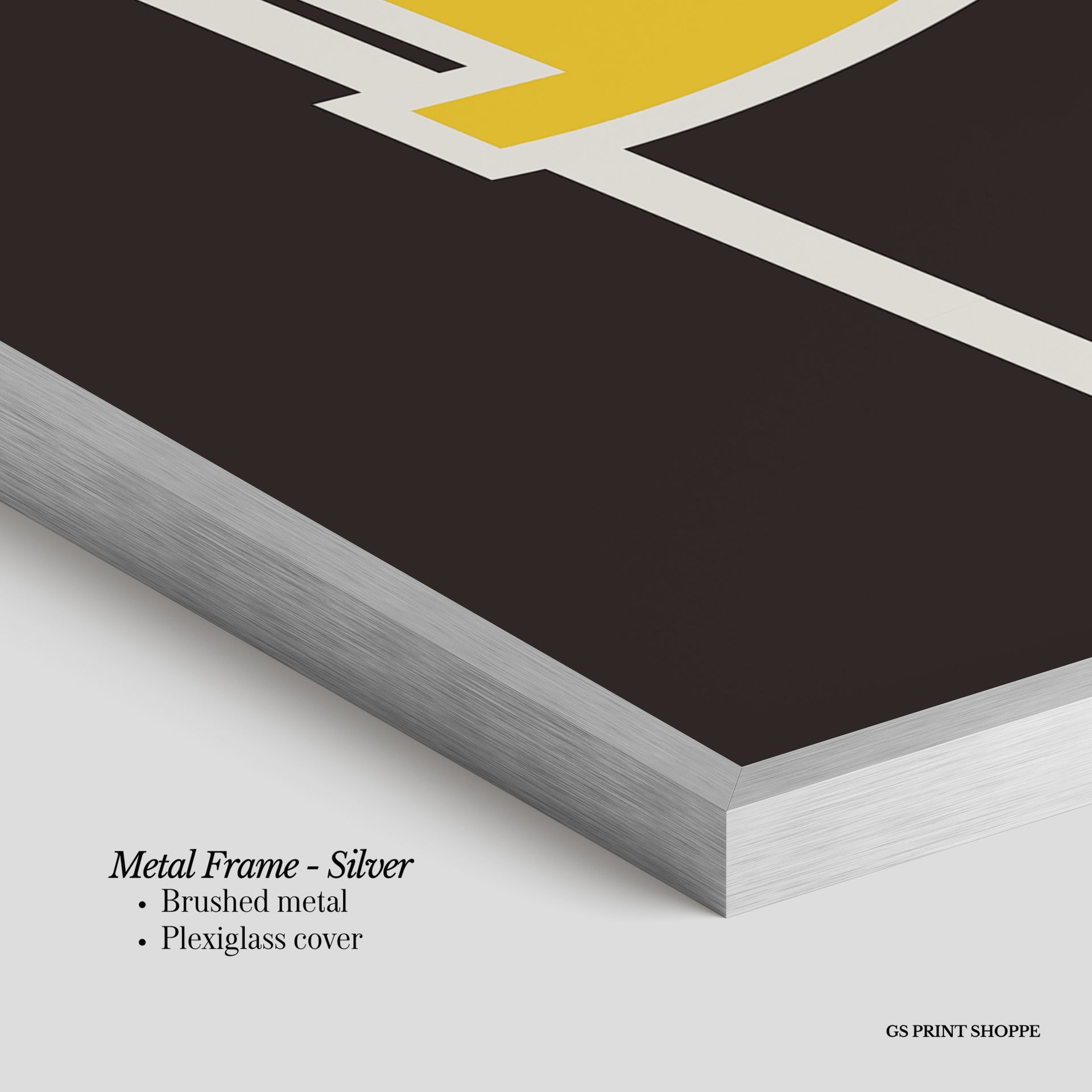 Metal Frame: Sleek and modern, our metal frame is crafted with brushed metal for a polished finish. It comes with durable plexiglass and sturdy metal hangers for horizontal or vertical display.