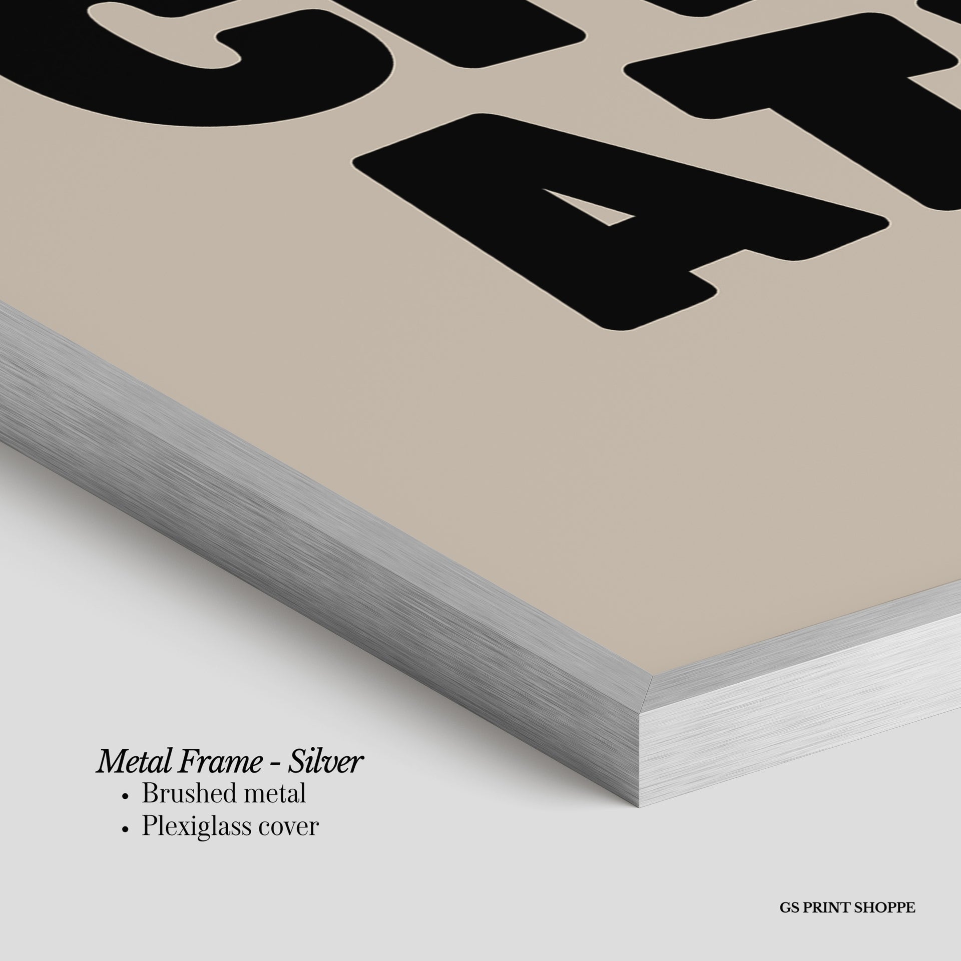Metal Frame: Sleek and modern, our metal frame is crafted with brushed metal for a polished finish. It comes with durable plexiglass and sturdy metal hangers for horizontal or vertical display.