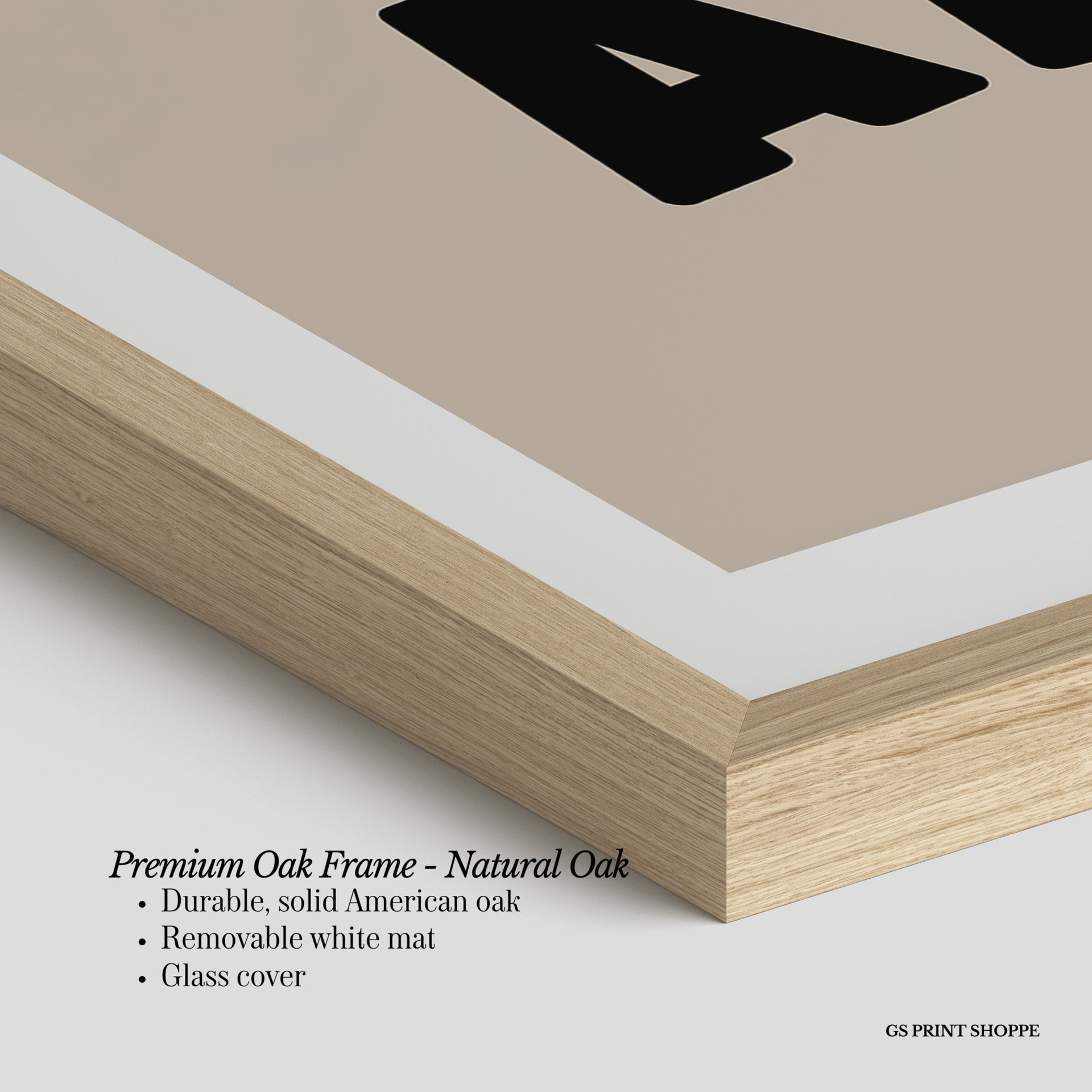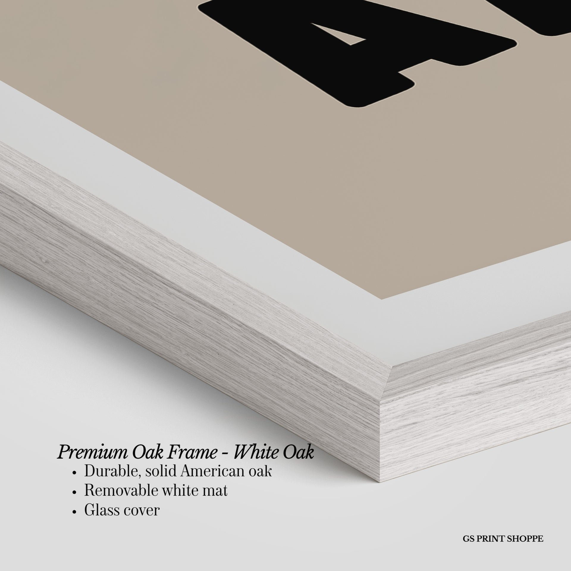 Premium Oak Frame: Our premium oak frame is crafted from solid American oak, offering a warm, natural feel with a high-end finish. We complete this elevated offering with a bright white removable mat and real glass for a versatile and polished look.