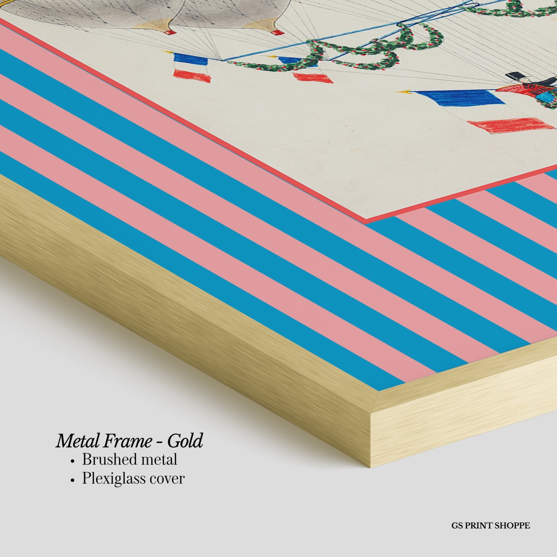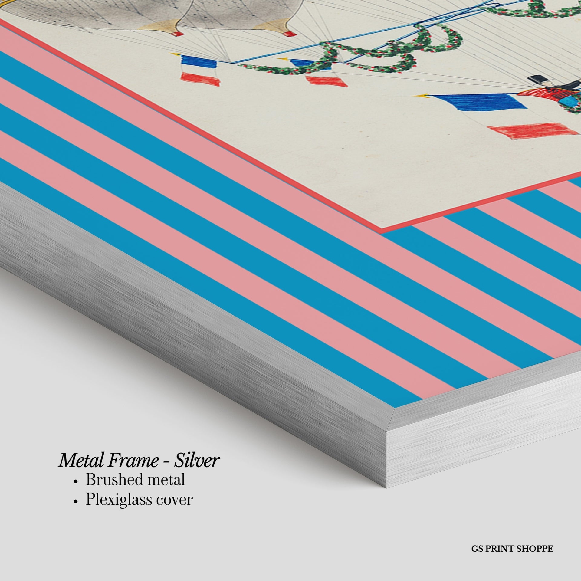 Metal Frame: Sleek and modern, our metal frame is crafted with brushed metal for a polished finish. It comes with durable plexiglass and sturdy metal hangers for horizontal or vertical display.