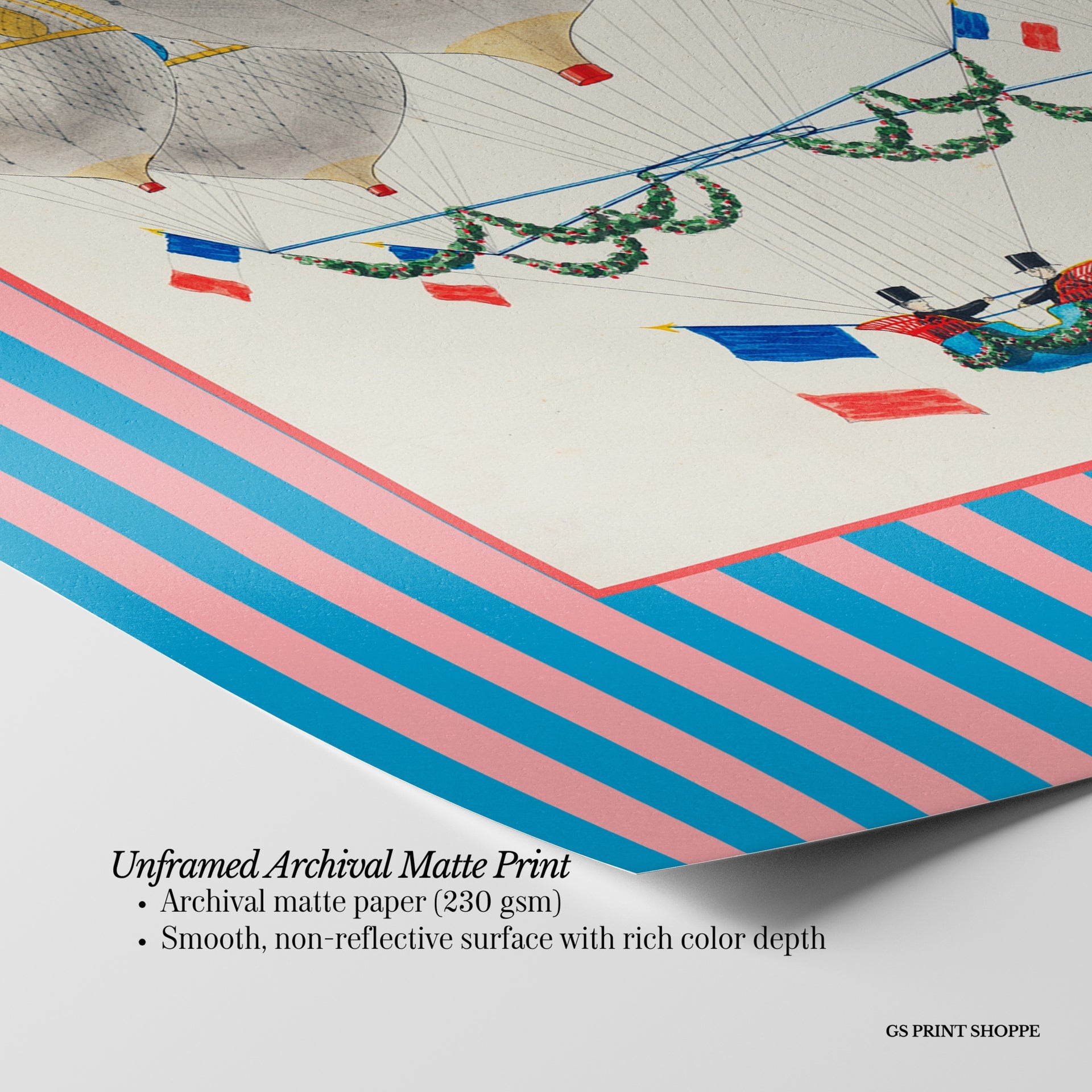 Unframed: This print is professionally printed on archival matte paper (230 gsm), a smooth, acid-free paper with a non-reflective finish. It will be carefully packaged to arrive safely at your door.