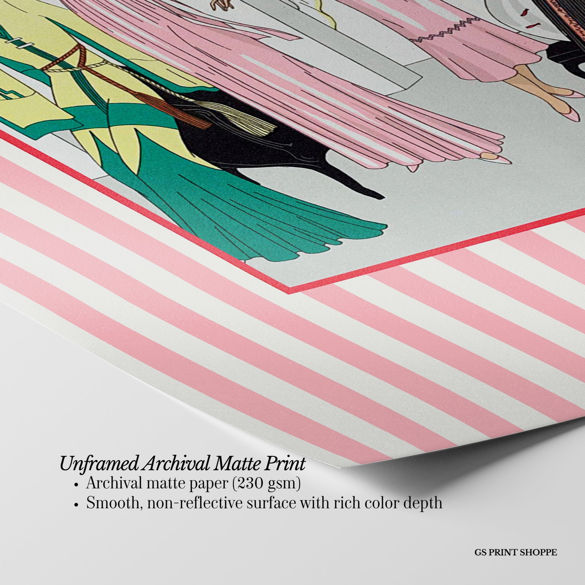 Unframed: This print is professionally printed on archival matte paper (230 gsm), a smooth, acid-free paper with a non-reflective finish. It will be carefully packaged to arrive safely at your door.