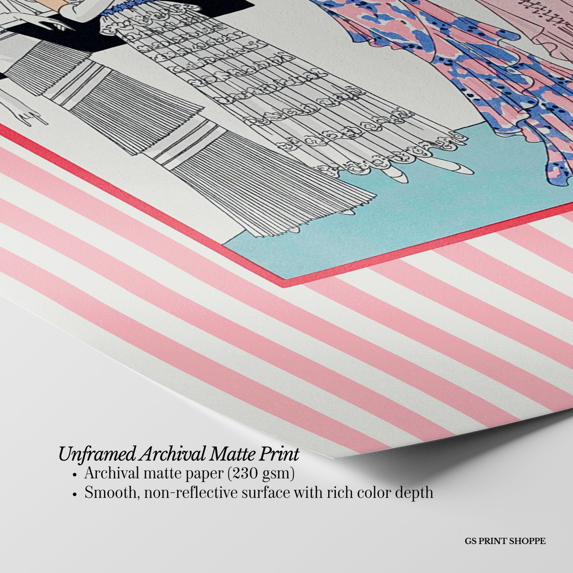 Unframed: This print is professionally printed on archival matte paper (230 gsm), a smooth, acid-free paper with a non-reflective finish. It will be carefully packaged to arrive safely at your door.