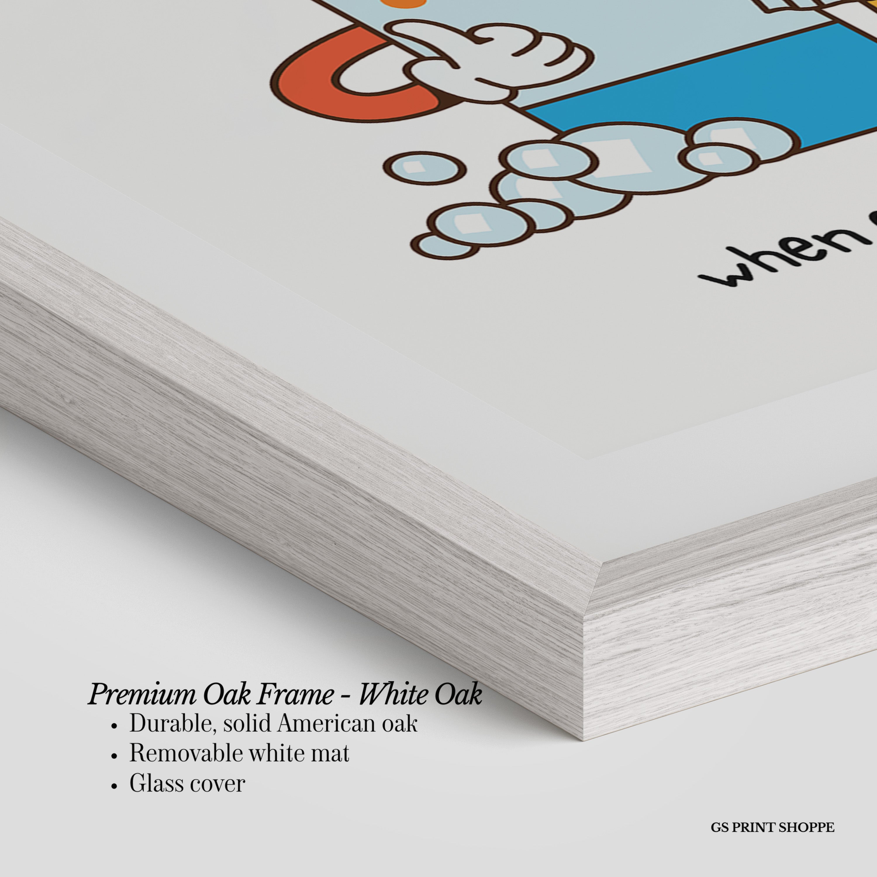 Premium Oak Frame: Our premium oak frame is crafted from solid American oak, offering a warm, natural feel with a high-end finish. We complete this elevated offering with a bright white removable mat and real glass for a versatile and polished look.