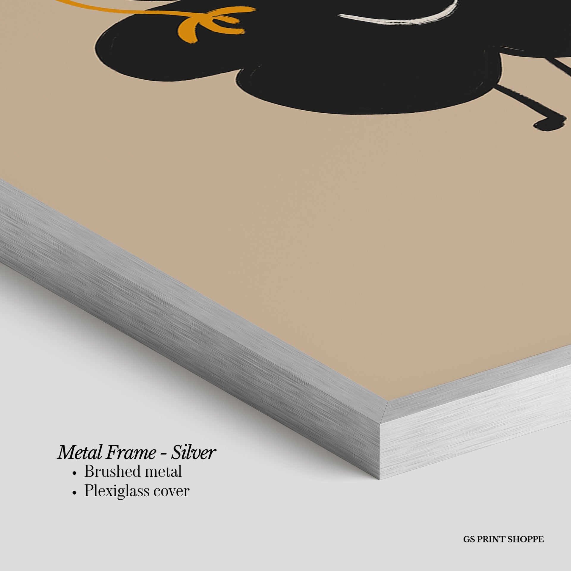 Metal Frame: Sleek and modern, our metal frame is crafted with brushed metal for a polished finish. It comes with durable plexiglass and sturdy metal hangers for horizontal or vertical display.