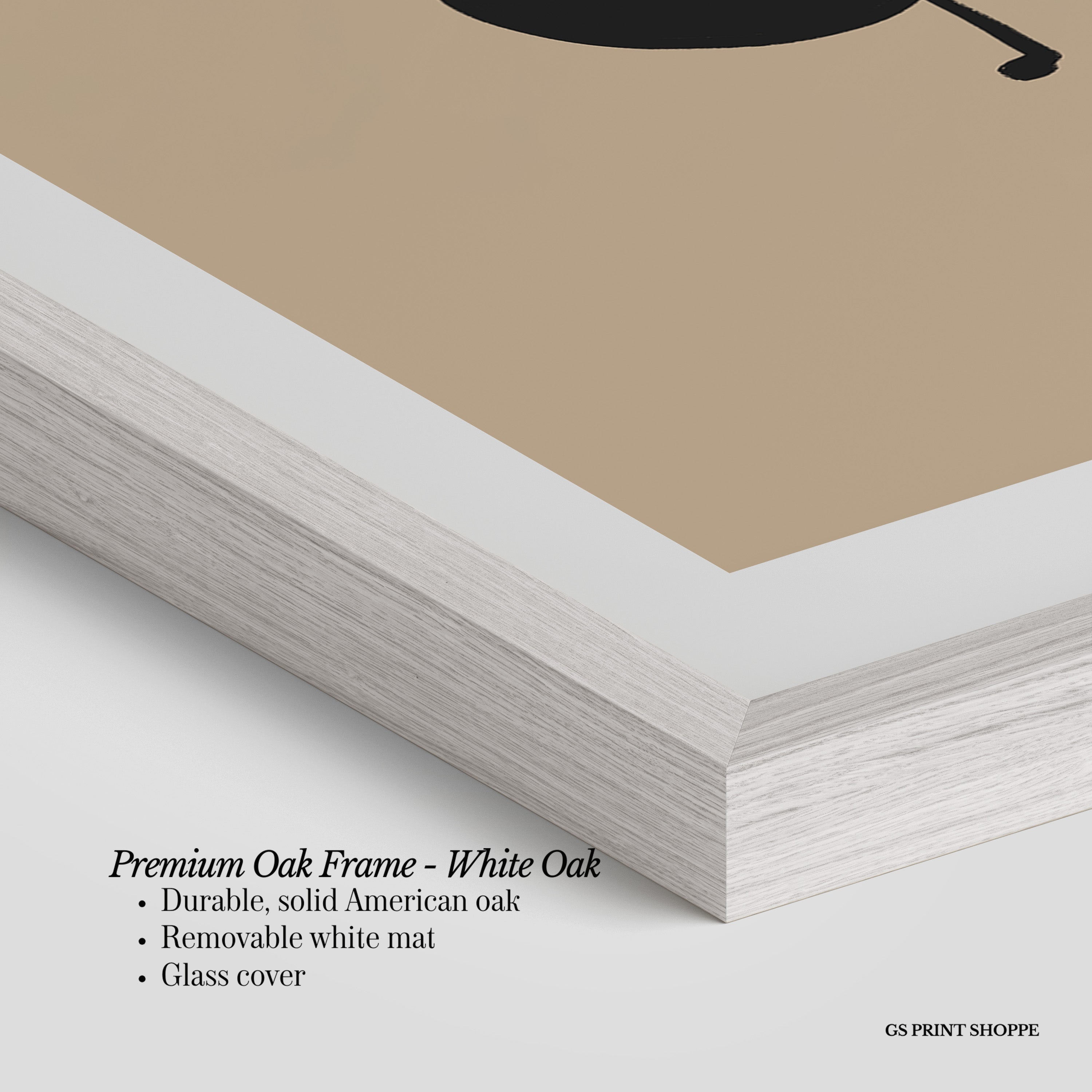 Premium Oak Frame: Our premium oak frame is crafted from solid American oak, offering a warm, natural feel with a high-end finish. We complete this elevated offering with a bright white removable mat and real glass for a versatile and polished look.