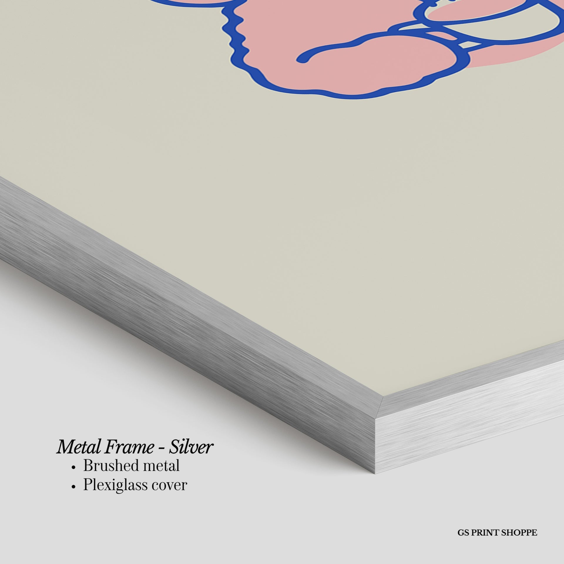 Metal Frame: Sleek and modern, our metal frame is crafted with brushed metal for a polished finish. It comes with durable plexiglass and sturdy metal hangers for horizontal or vertical display.