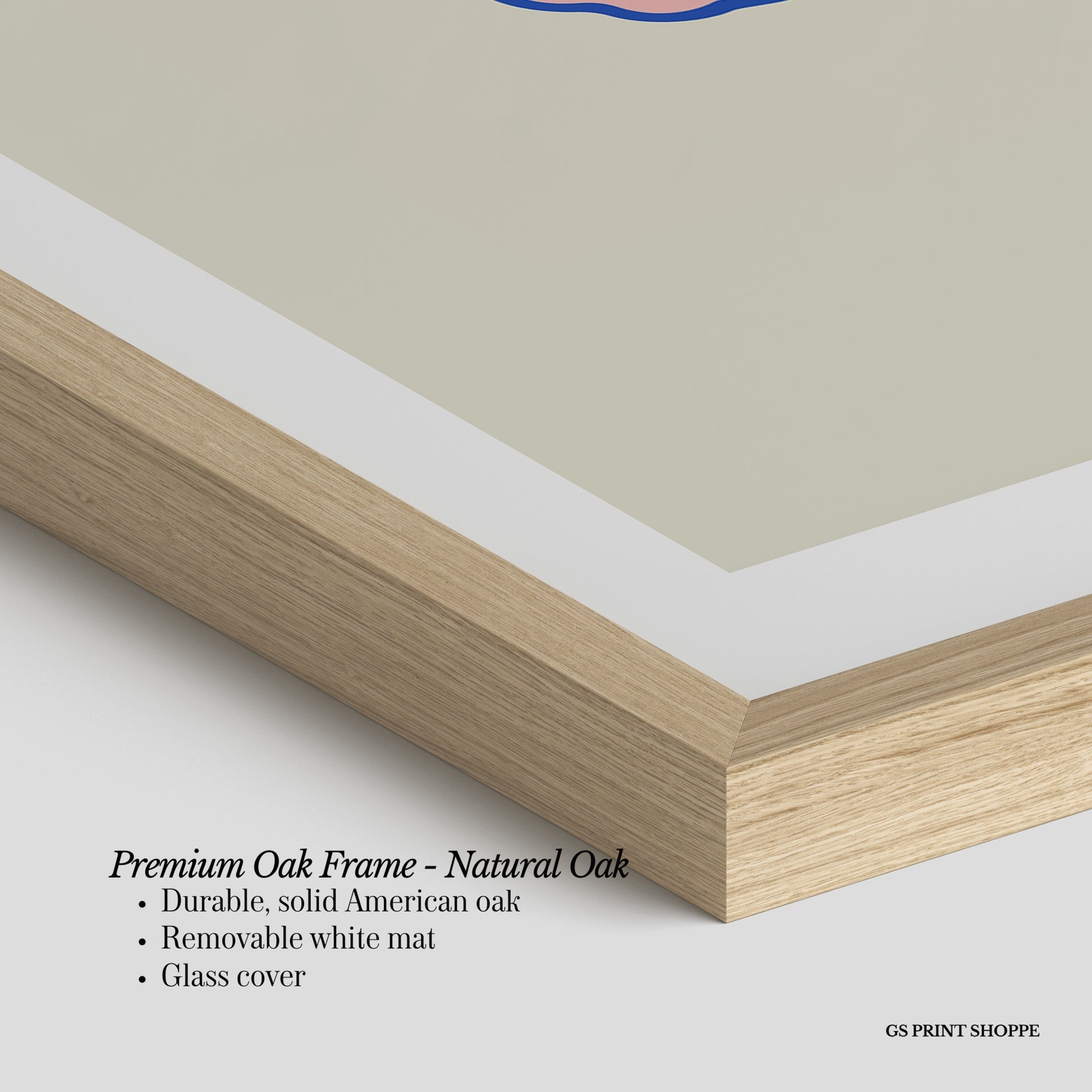 Premium Oak Frame: Our premium oak frame is crafted from solid American oak, offering a warm, natural feel with a high-end finish. We complete this elevated offering with a bright white removable mat and real glass for a versatile and polished look.