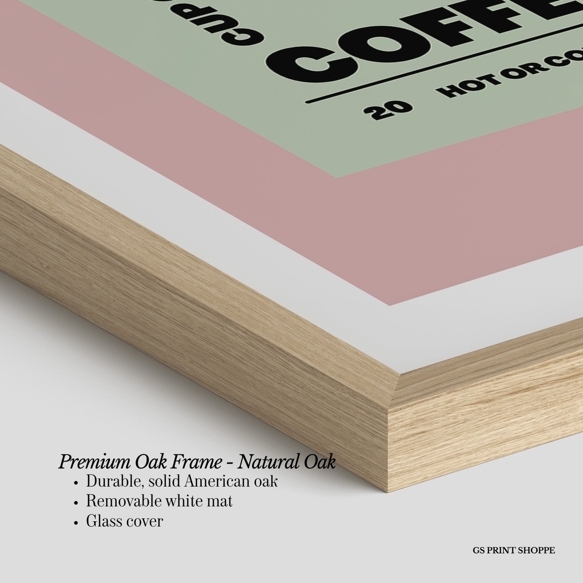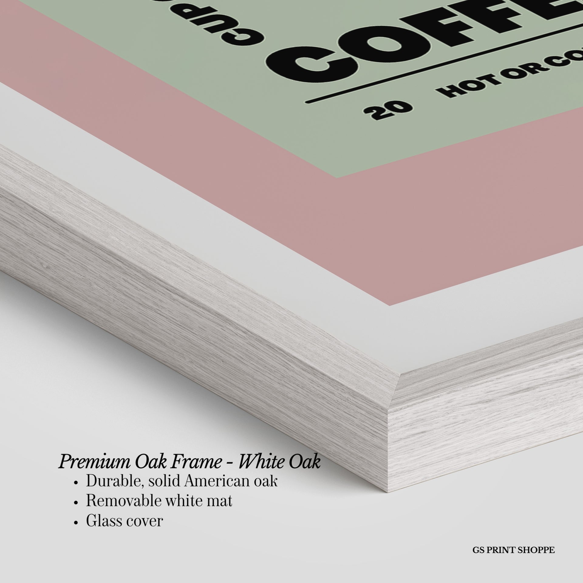 Premium Oak Frame: Our premium oak frame is crafted from solid American oak, offering a warm, natural feel with a high-end finish. We complete this elevated offering with a bright white removable mat and real glass for a versatile and polished look.
