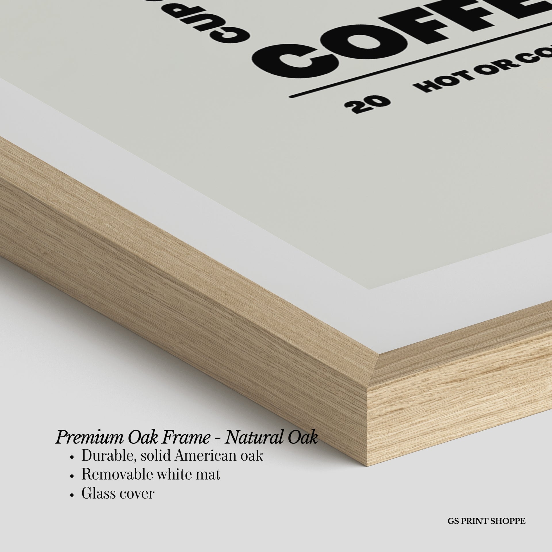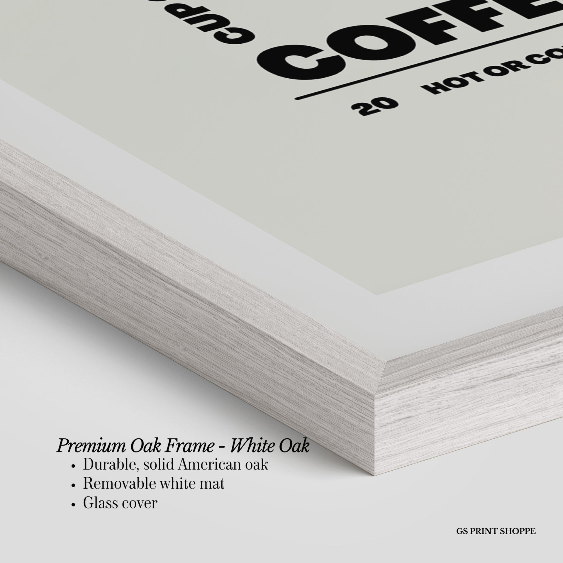 Premium Oak Frame: Our premium oak frame is crafted from solid American oak, offering a warm, natural feel with a high-end finish. We complete this elevated offering with a bright white removable mat and real glass for a versatile and polished look.