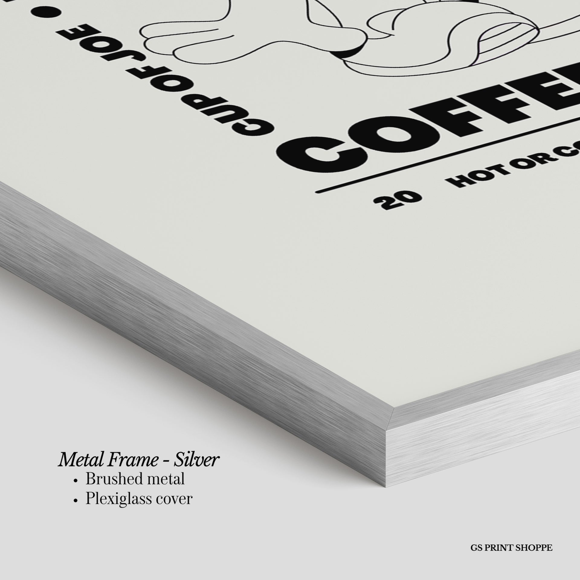 Metal Frame: Sleek and modern, our metal frame is crafted with brushed metal for a polished finish. It comes with durable plexiglass and sturdy metal hangers for horizontal or vertical display.