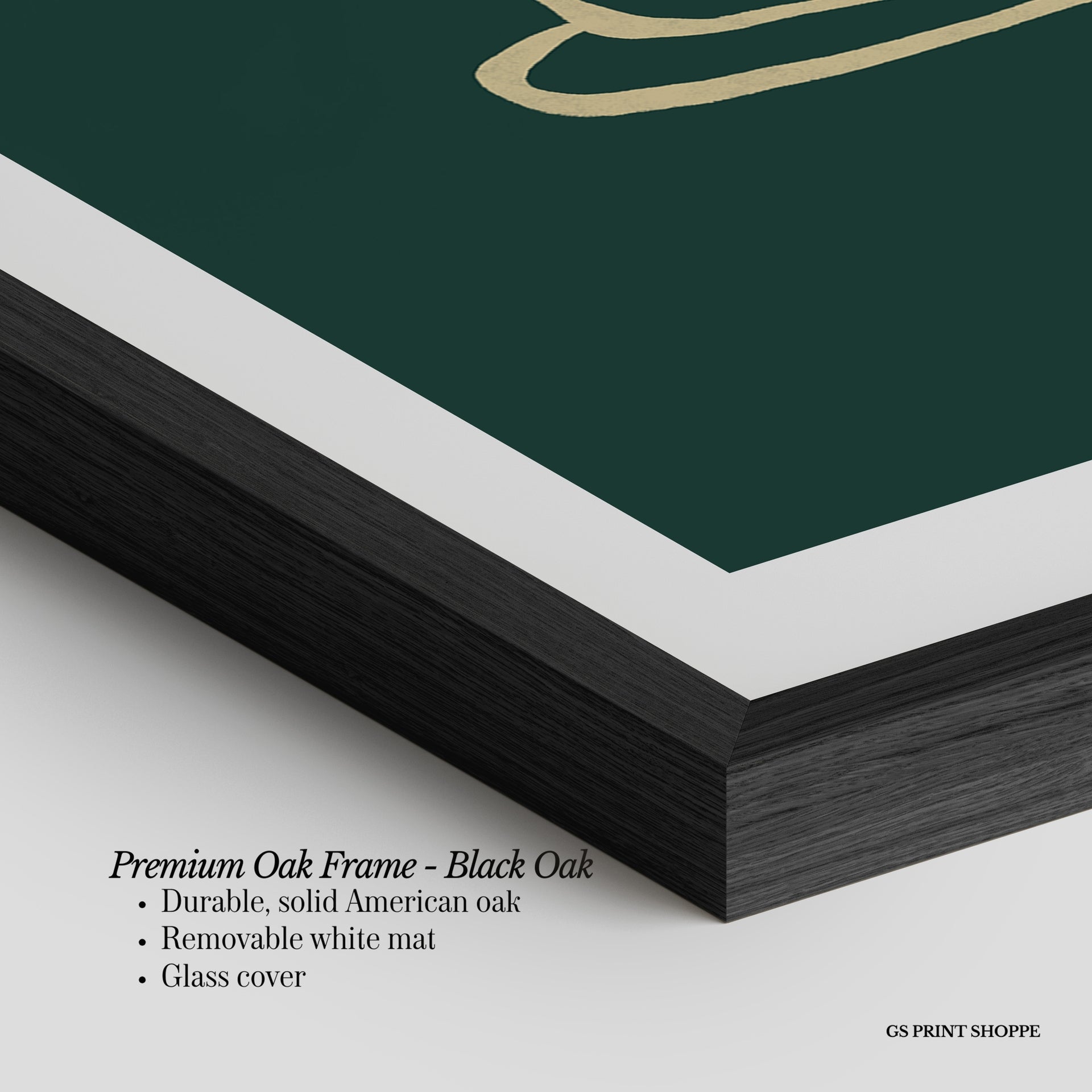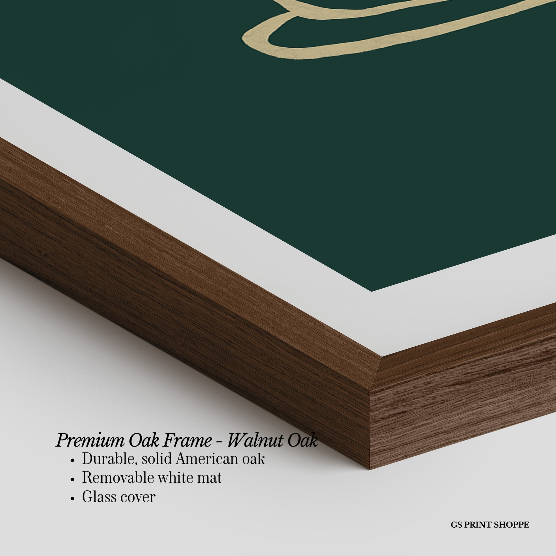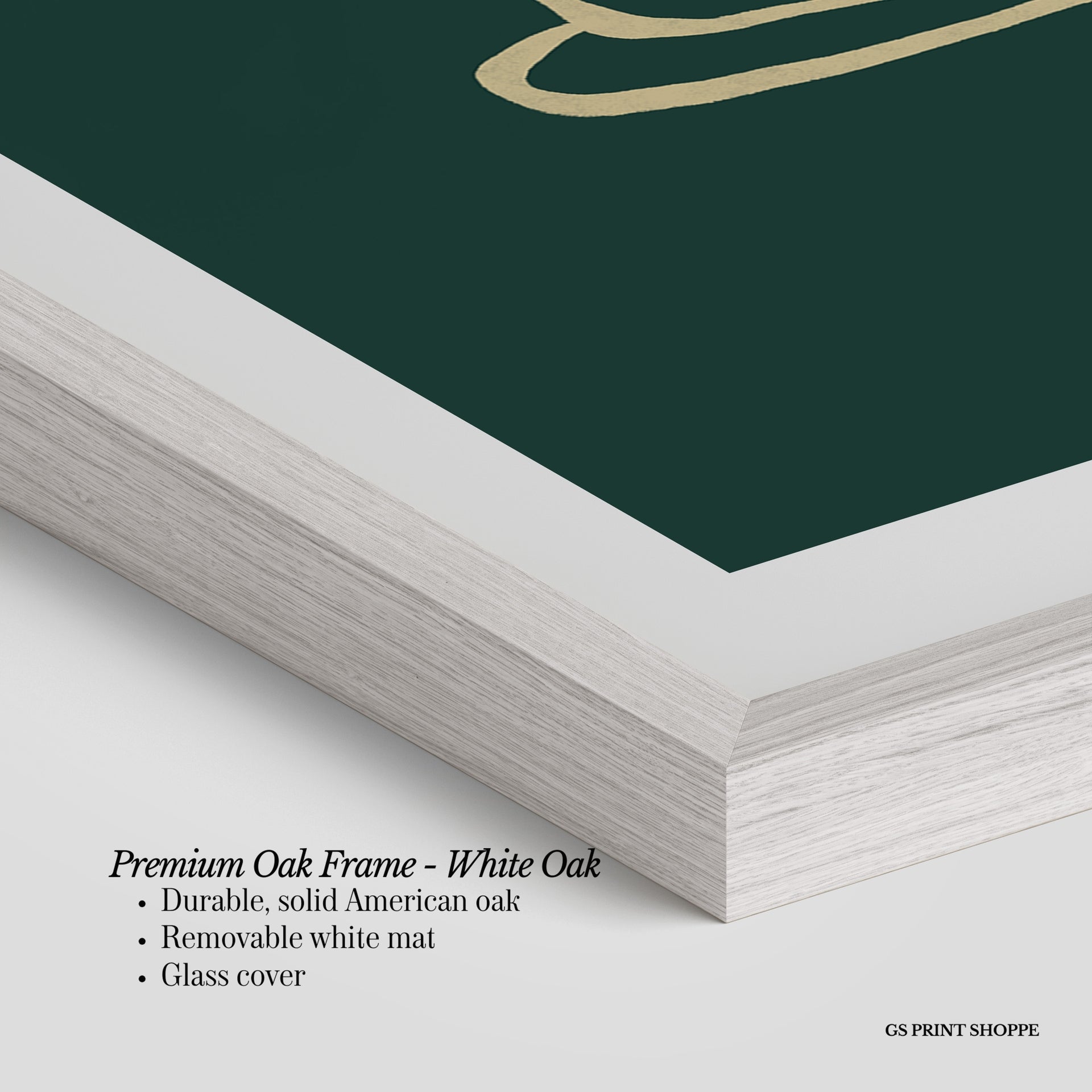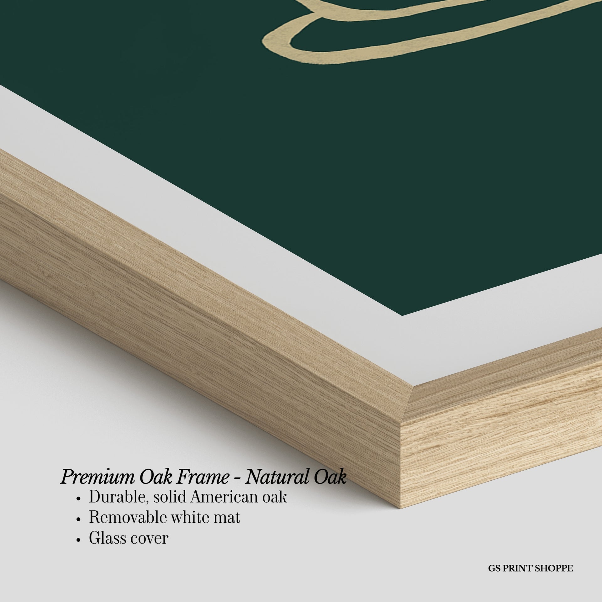 Premium Oak Frame: Our premium oak frame is crafted from solid American oak, offering a warm, natural feel with a high-end finish. We complete this elevated offering with a bright white removable mat and real glass for a versatile and polished look.