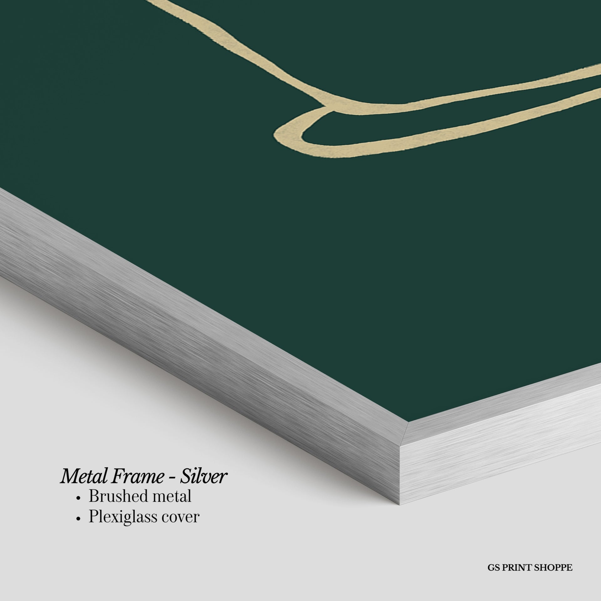 Metal Frame: Sleek and modern, our metal frame is crafted with brushed metal for a polished finish. It comes with durable plexiglass and sturdy metal hangers for horizontal or vertical display.