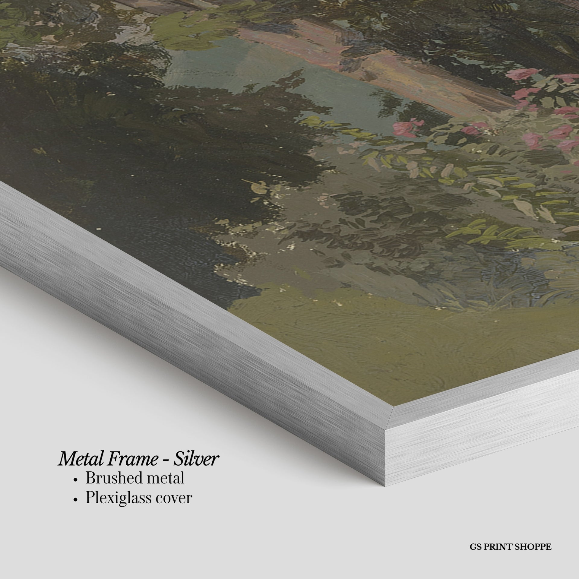 Metal Frame: Sleek and modern, our metal frame is crafted with brushed metal for a polished finish. It comes with durable plexiglass and sturdy metal hangers for horizontal or vertical display.