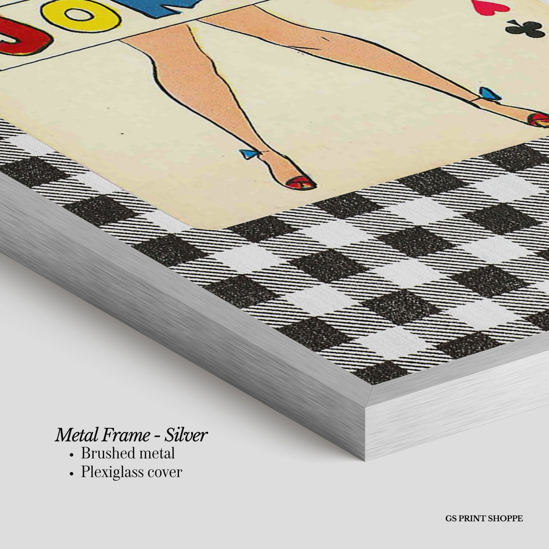 Metal Frame: Sleek and modern, our metal frame is crafted with brushed metal for a polished finish. It comes with durable plexiglass and sturdy metal hangers for horizontal or vertical display.