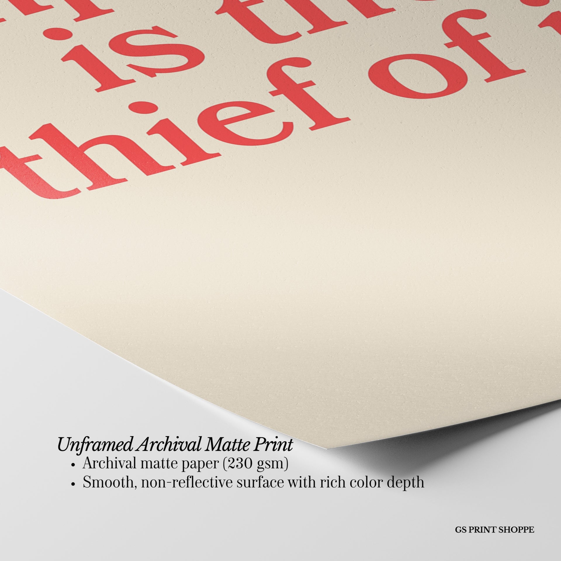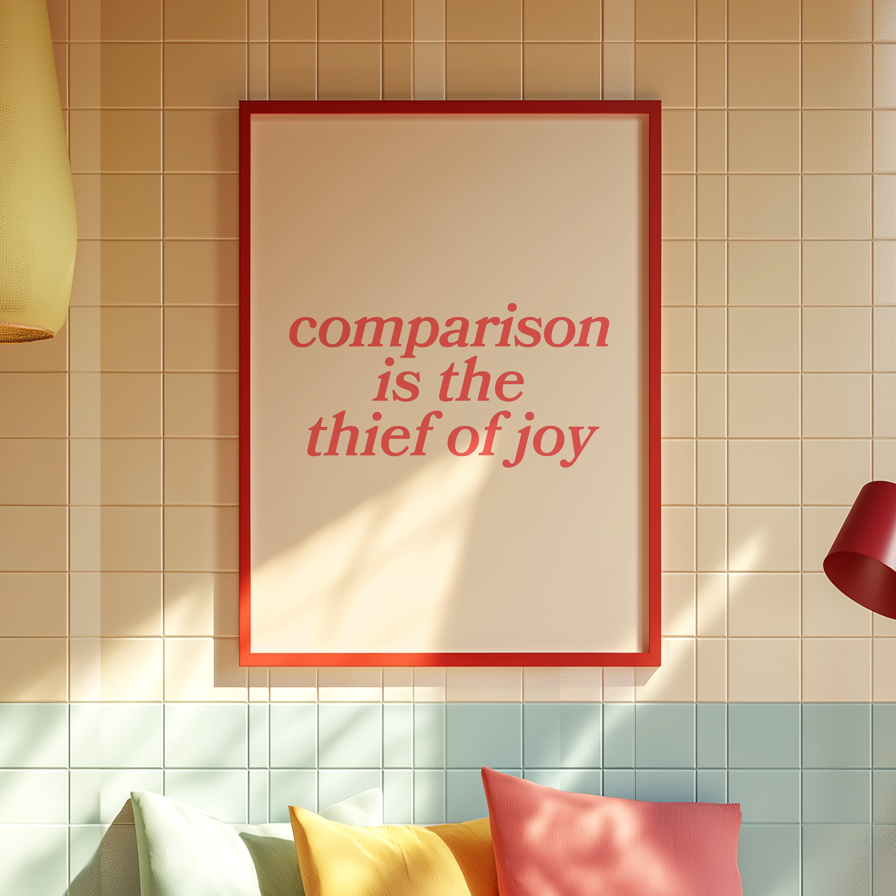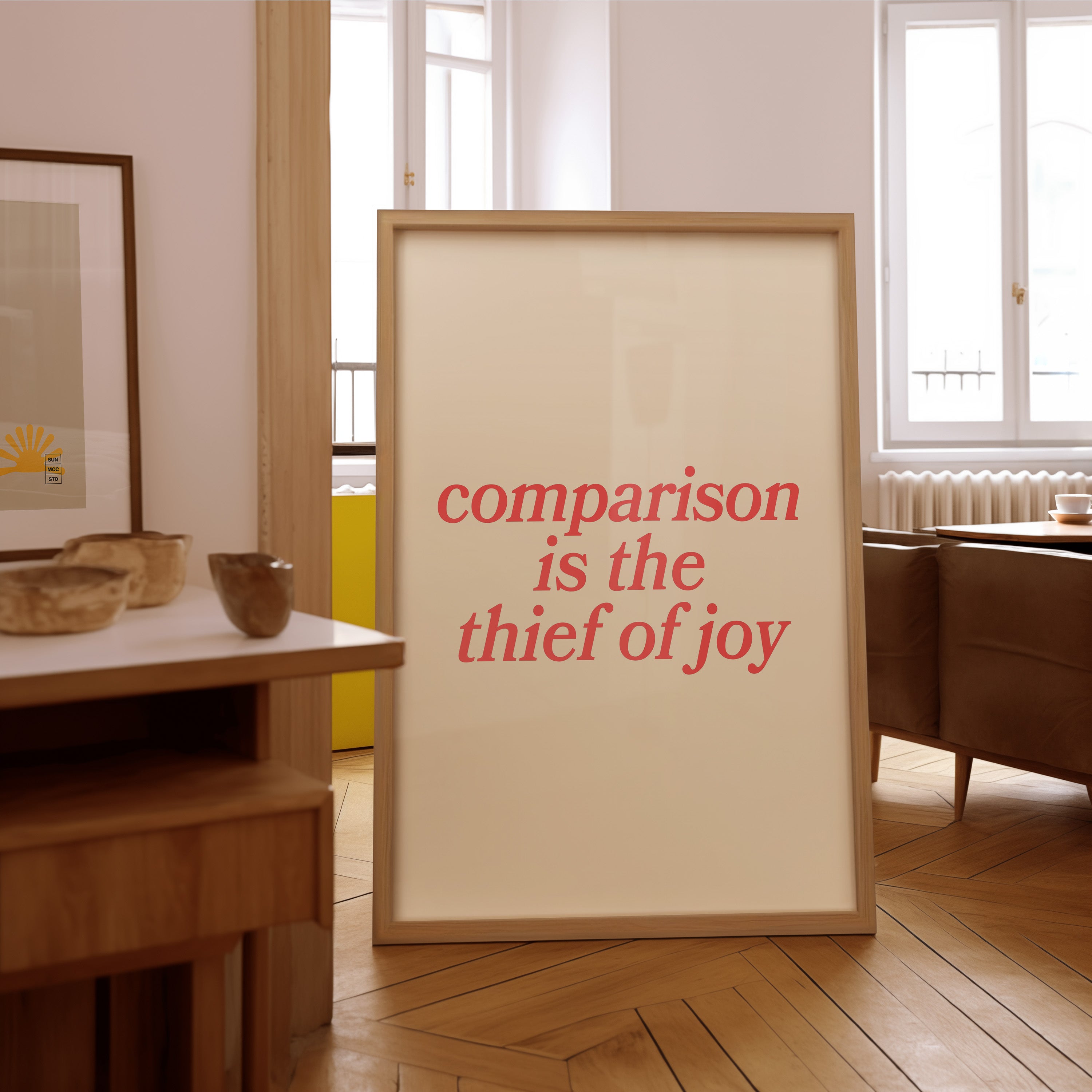 Comparison Is The Thief Of Joy Vertical Art Print - Beige