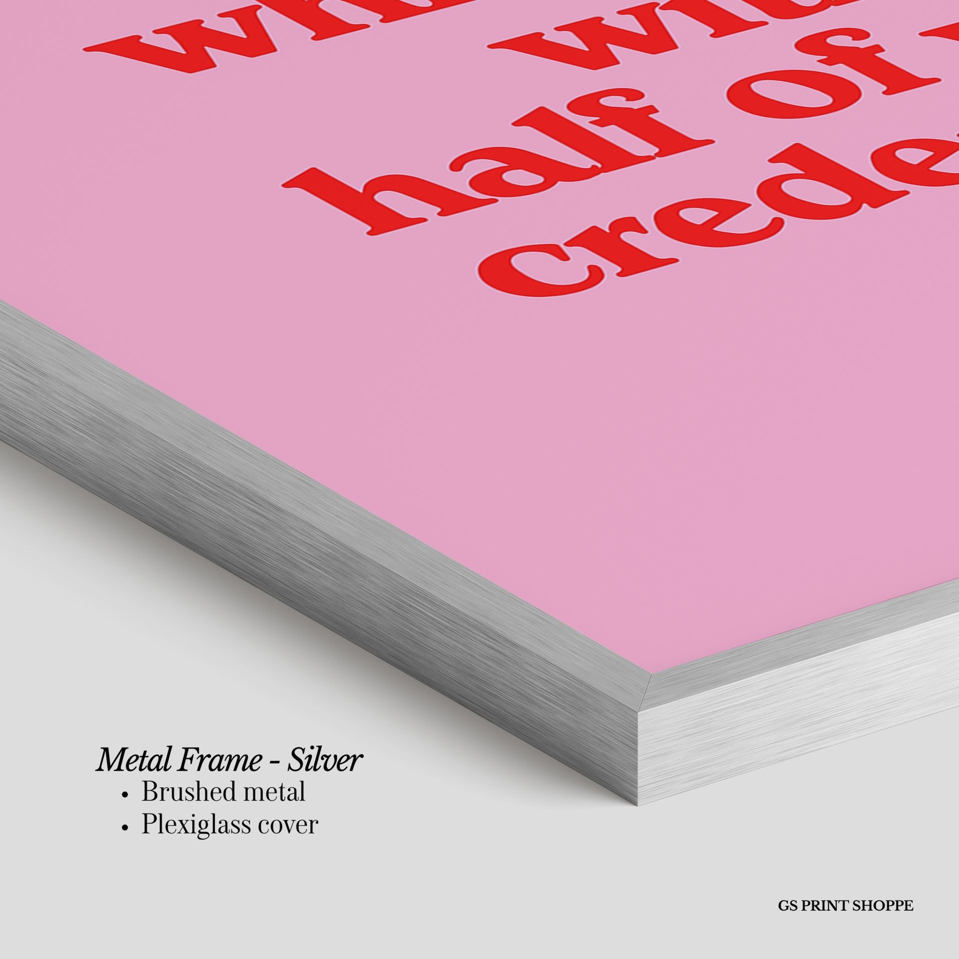 Metal Frame: Sleek and modern, our metal frame is crafted with brushed metal for a polished finish. It comes with durable plexiglass and sturdy metal hangers for horizontal or vertical display.