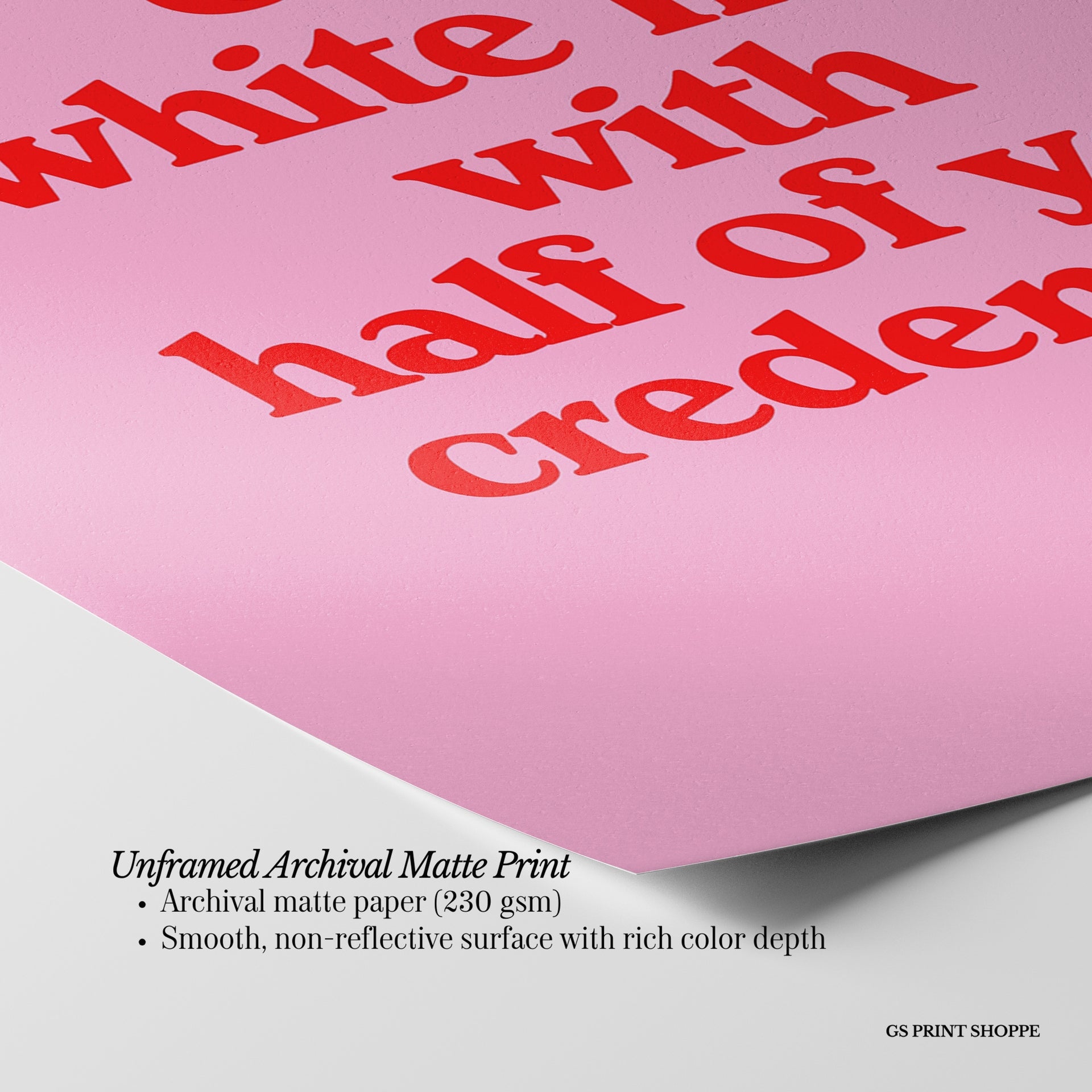 Unframed: This print is professionally printed on archival matte paper (230 gsm), a smooth, acid-free paper with a non-reflective finish. It will be carefully packaged to arrive safely at your door.