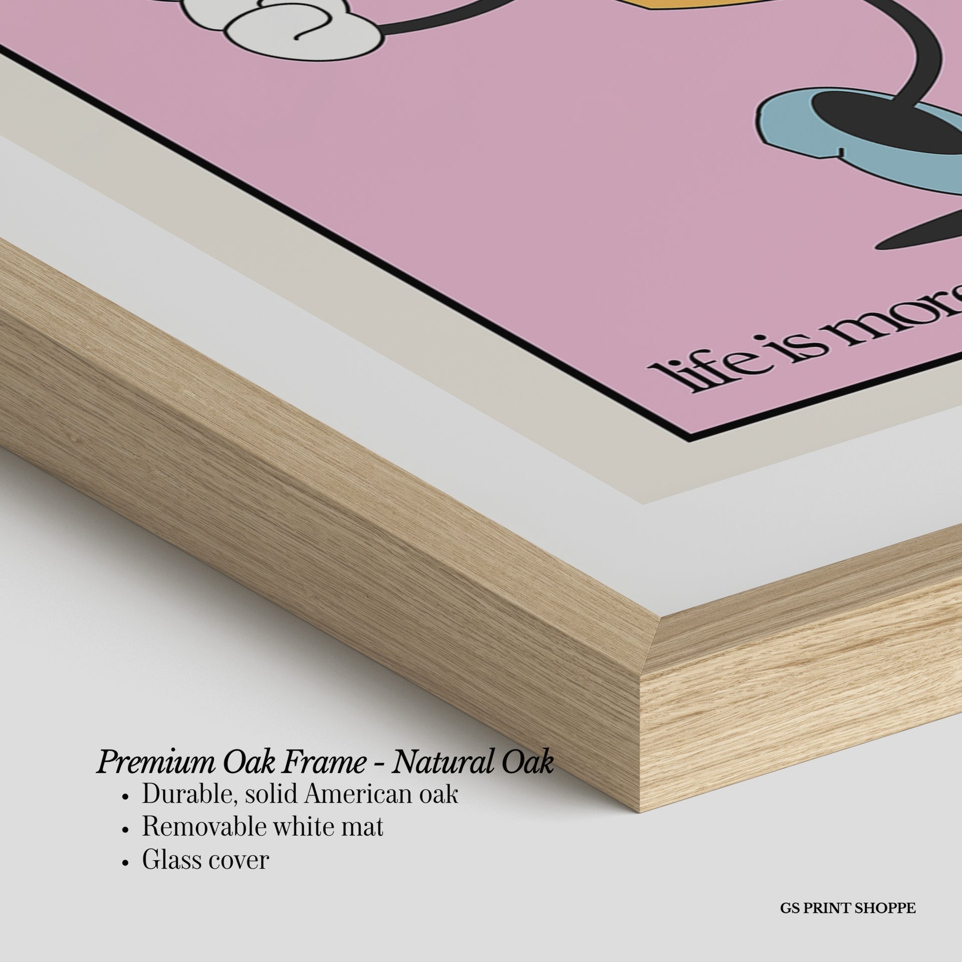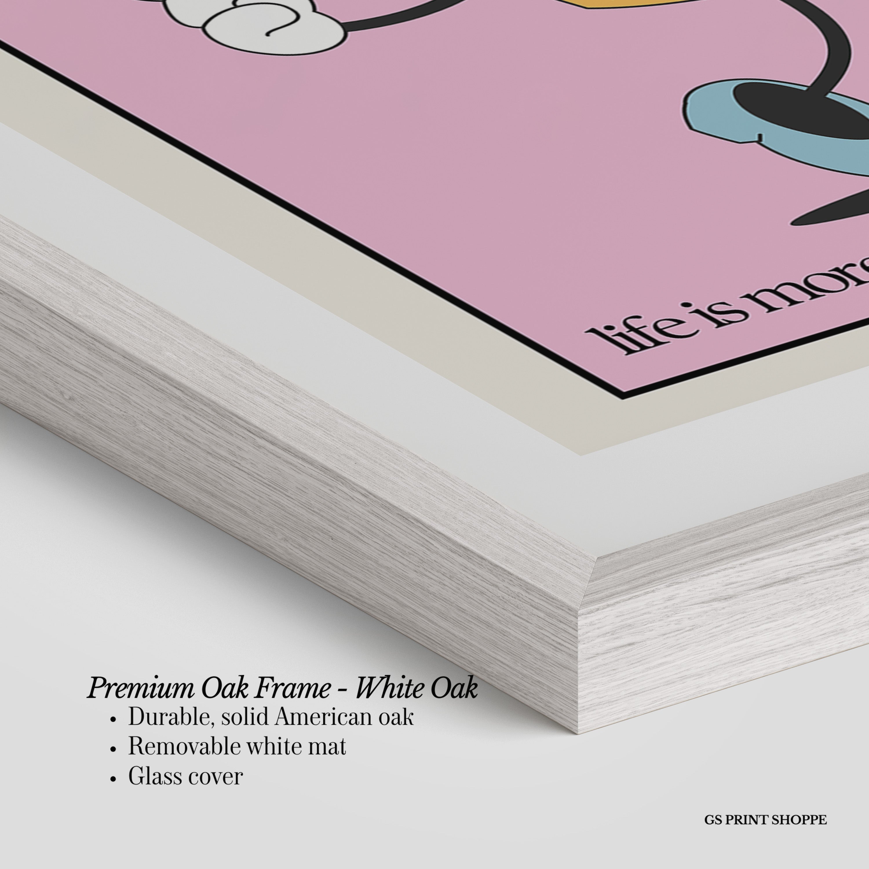 Premium Oak Frame: Our premium oak frame is crafted from solid American oak, offering a warm, natural feel with a high-end finish. We complete this elevated offering with a bright white removable mat and real glass for a versatile and polished look.