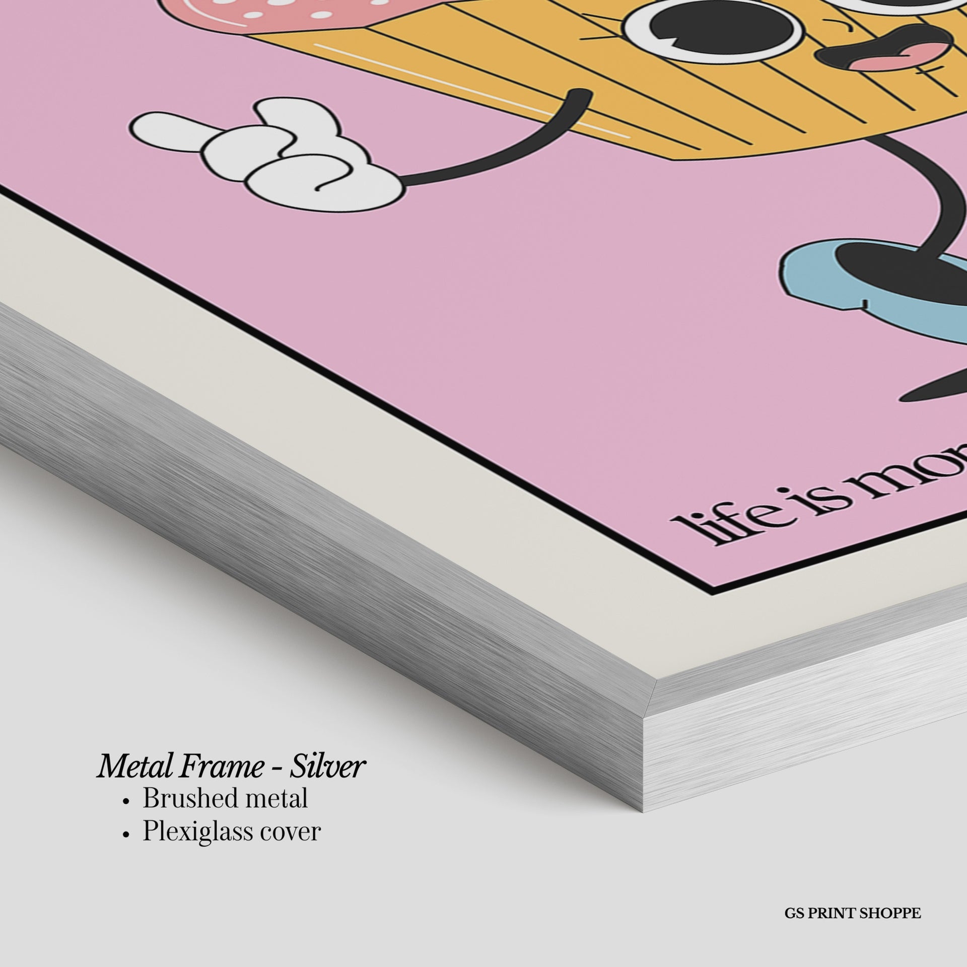 Metal Frame: Sleek and modern, our metal frame is crafted with brushed metal for a polished finish. It comes with durable plexiglass and sturdy metal hangers for horizontal or vertical display.