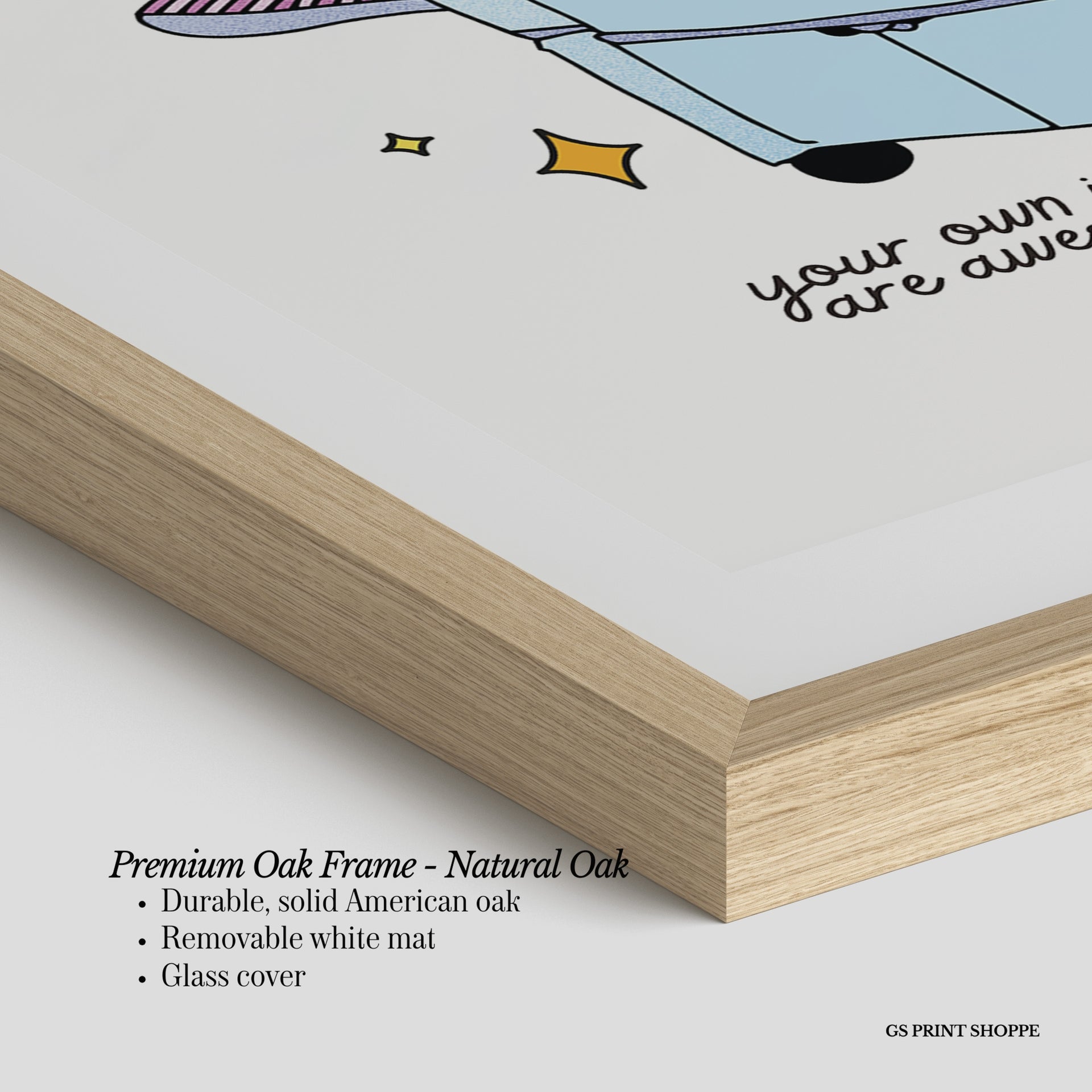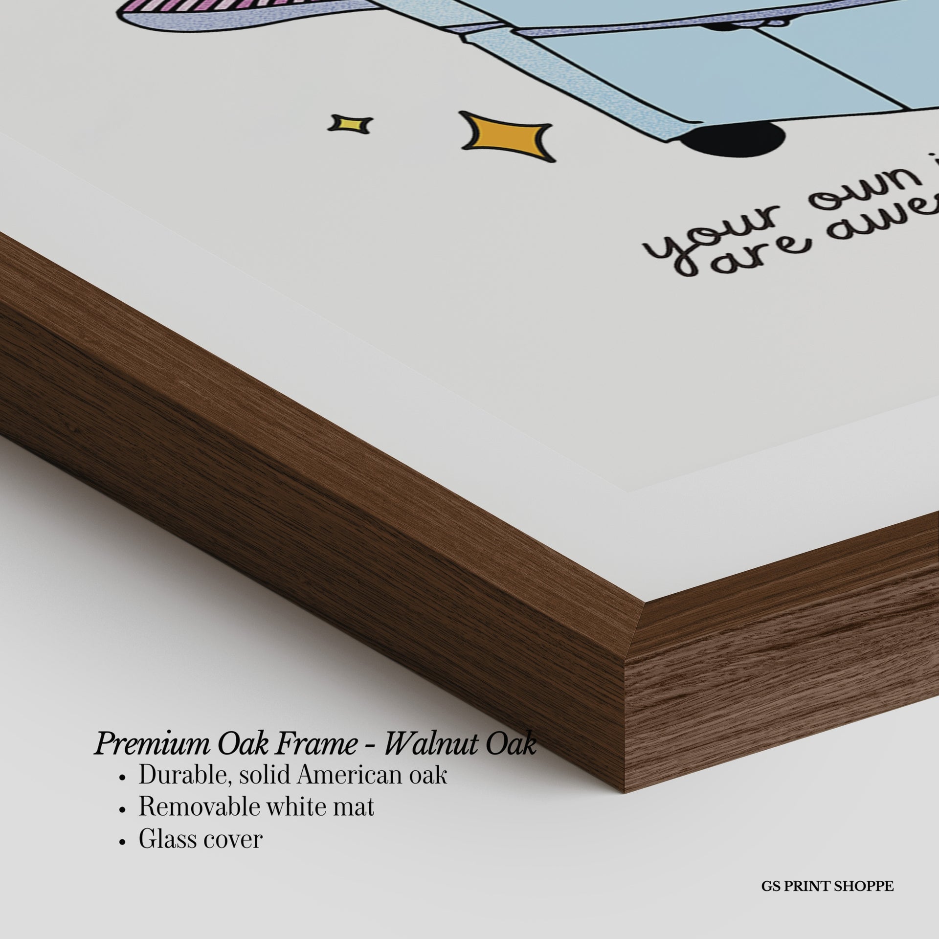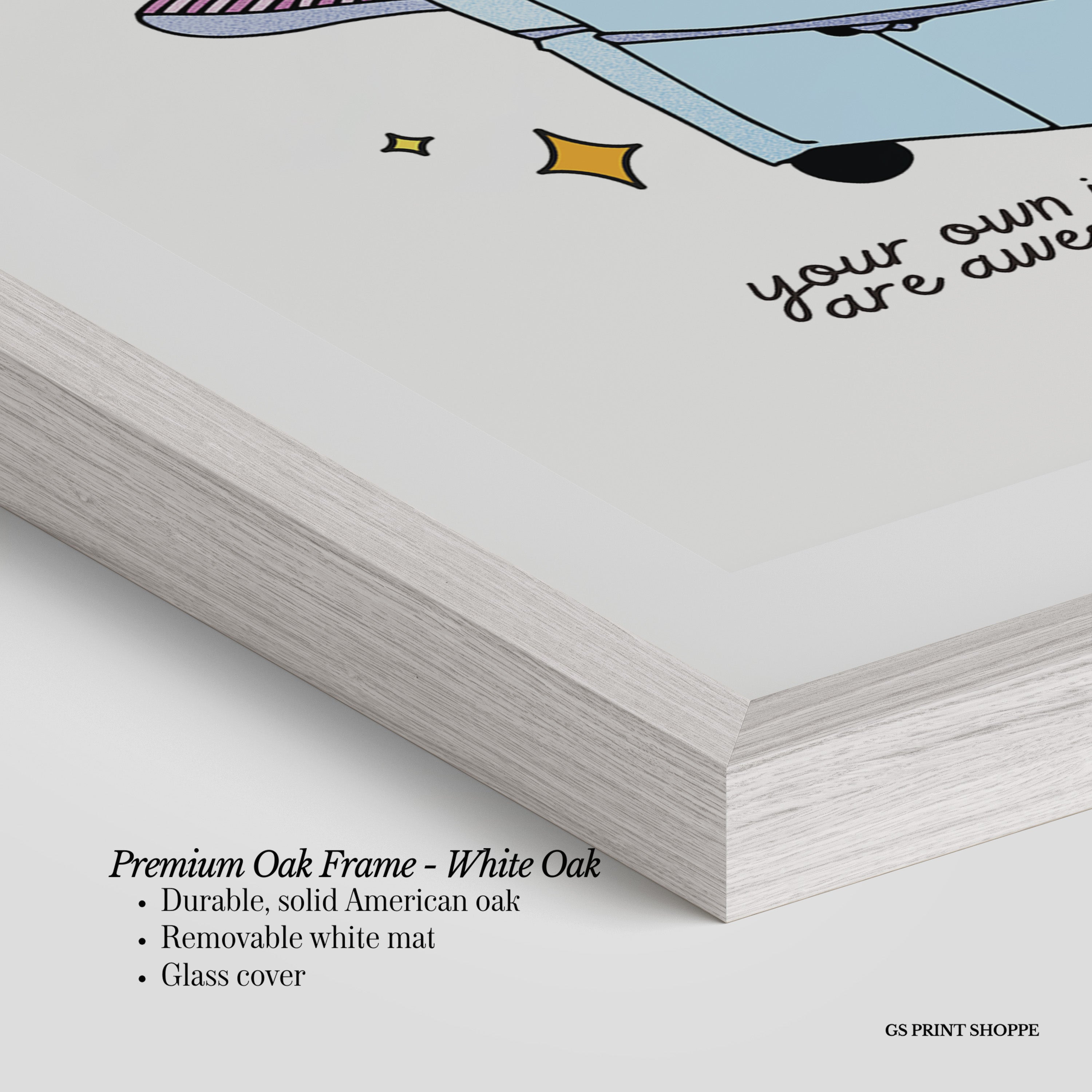 Premium Oak Frame: Our premium oak frame is crafted from solid American oak, offering a warm, natural feel with a high-end finish. We complete this elevated offering with a bright white removable mat and real glass for a versatile and polished look.