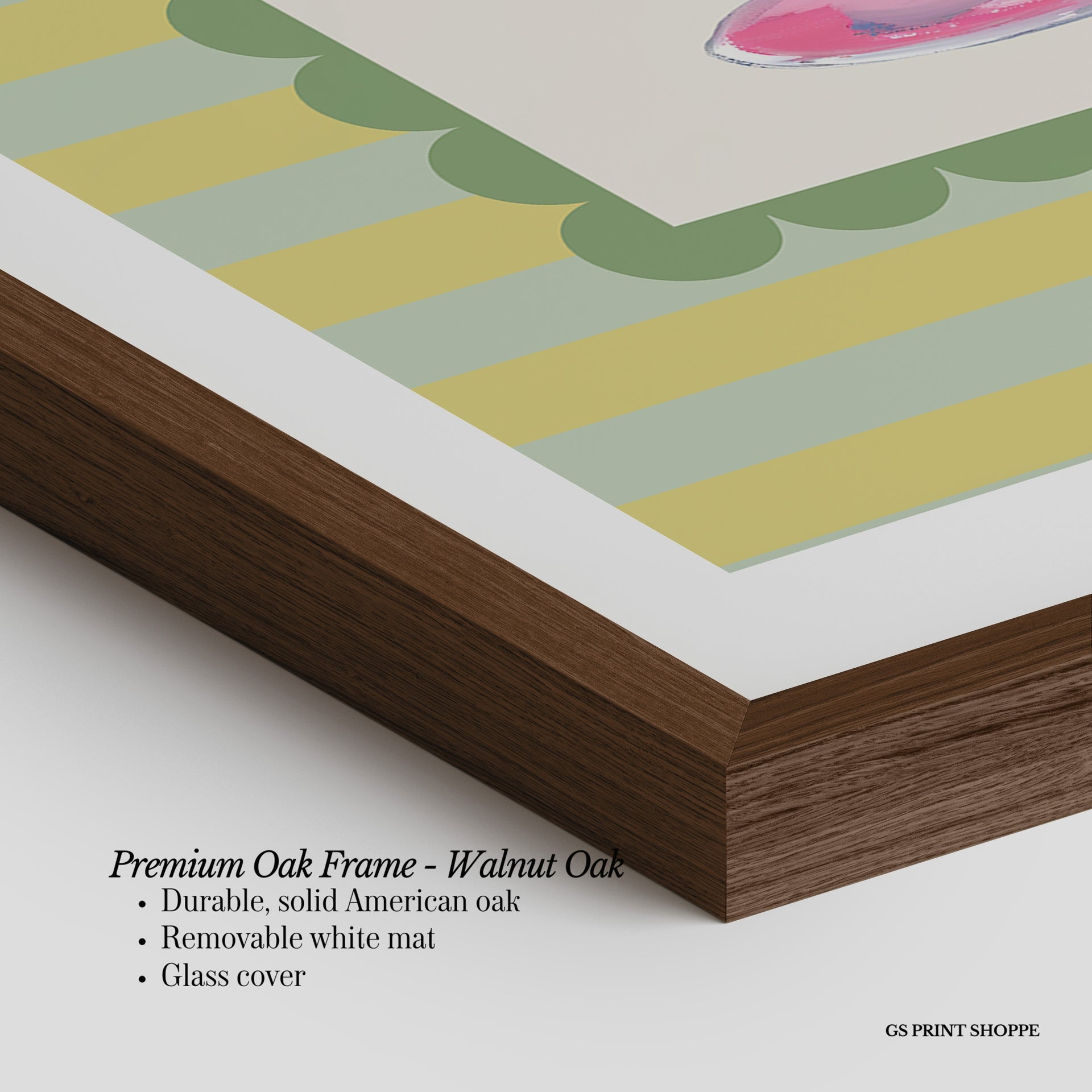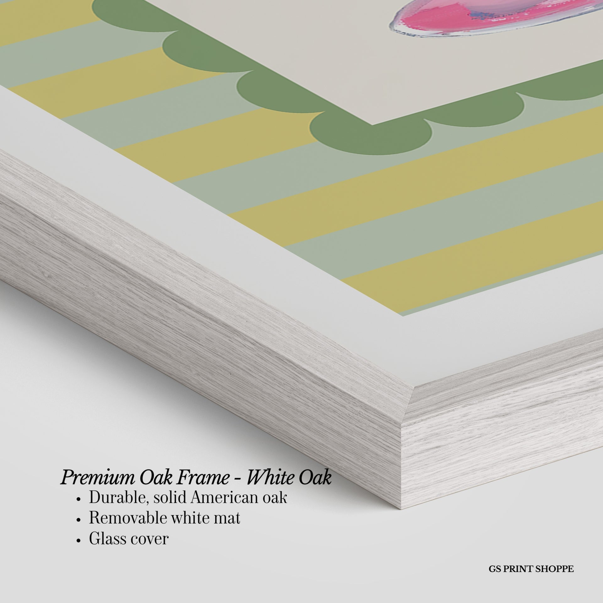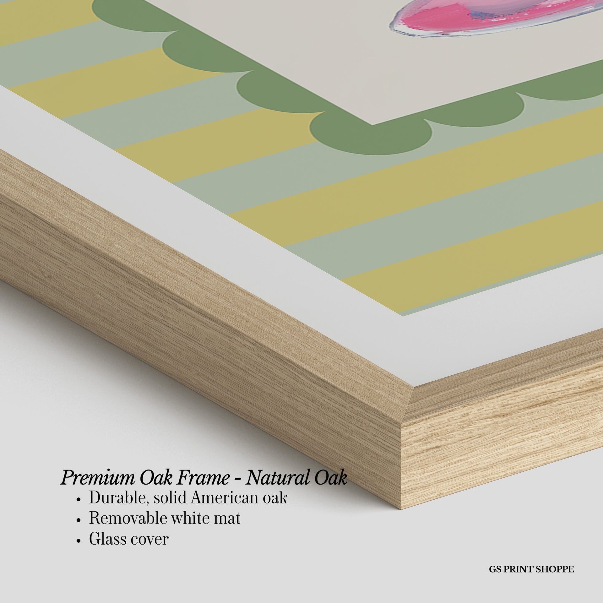 Premium Oak Frame: Our premium oak frame is crafted from solid American oak, offering a warm, natural feel with a high-end finish. We complete this elevated offering with a bright white removable mat and real glass for a versatile and polished look.