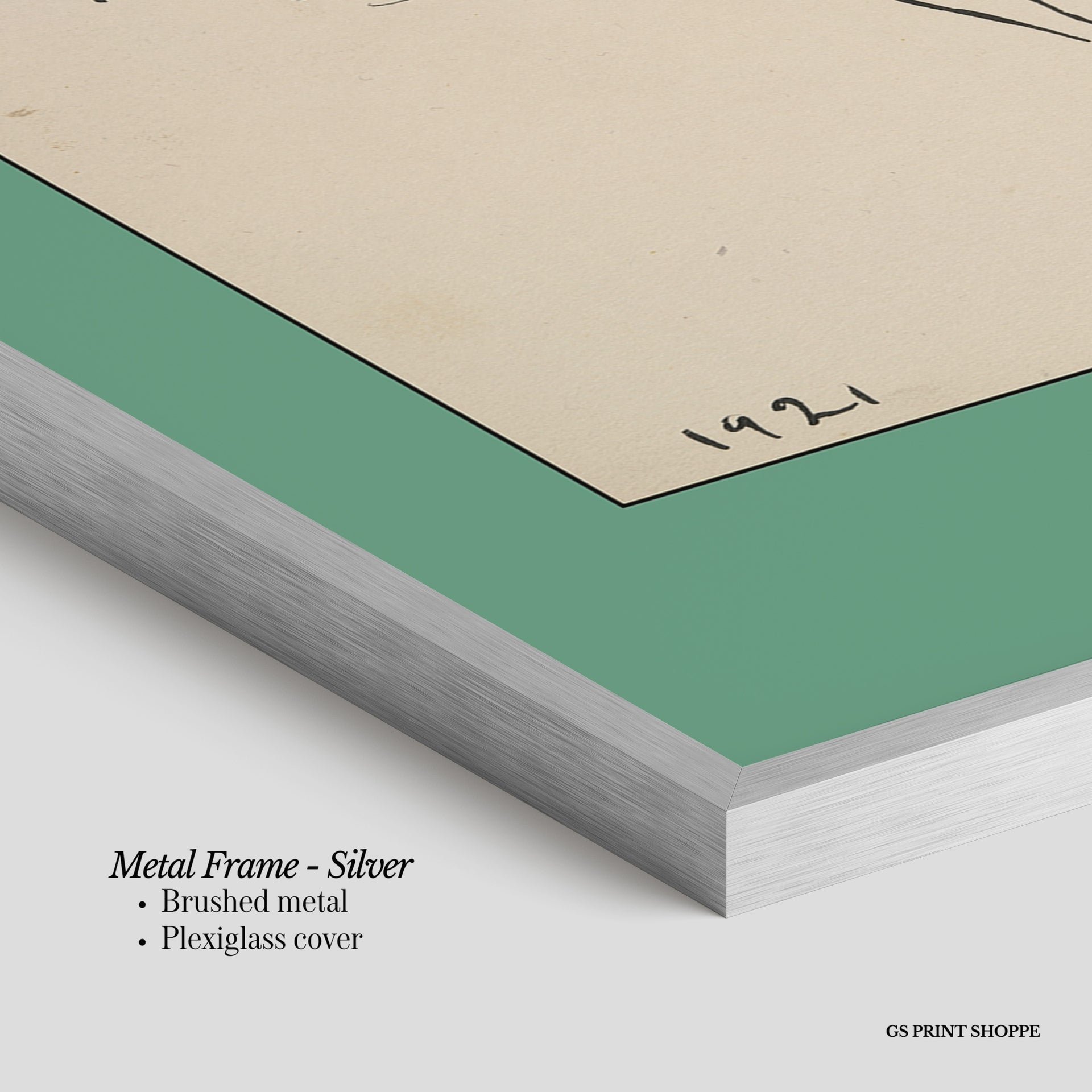 Metal Frame: Sleek and modern, our metal frame is crafted with brushed metal for a polished finish. It comes with durable plexiglass and sturdy metal hangers for horizontal or vertical display.