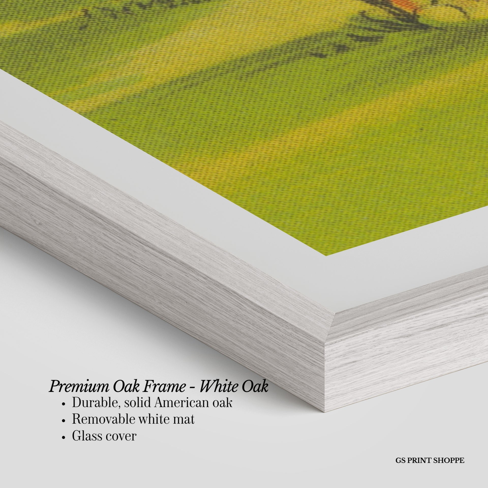 Premium Oak Frame: Our premium oak frame is crafted from solid American oak, offering a warm, natural feel with a high-end finish. We complete this elevated offering with a bright white removable mat and real glass for a versatile and polished look.