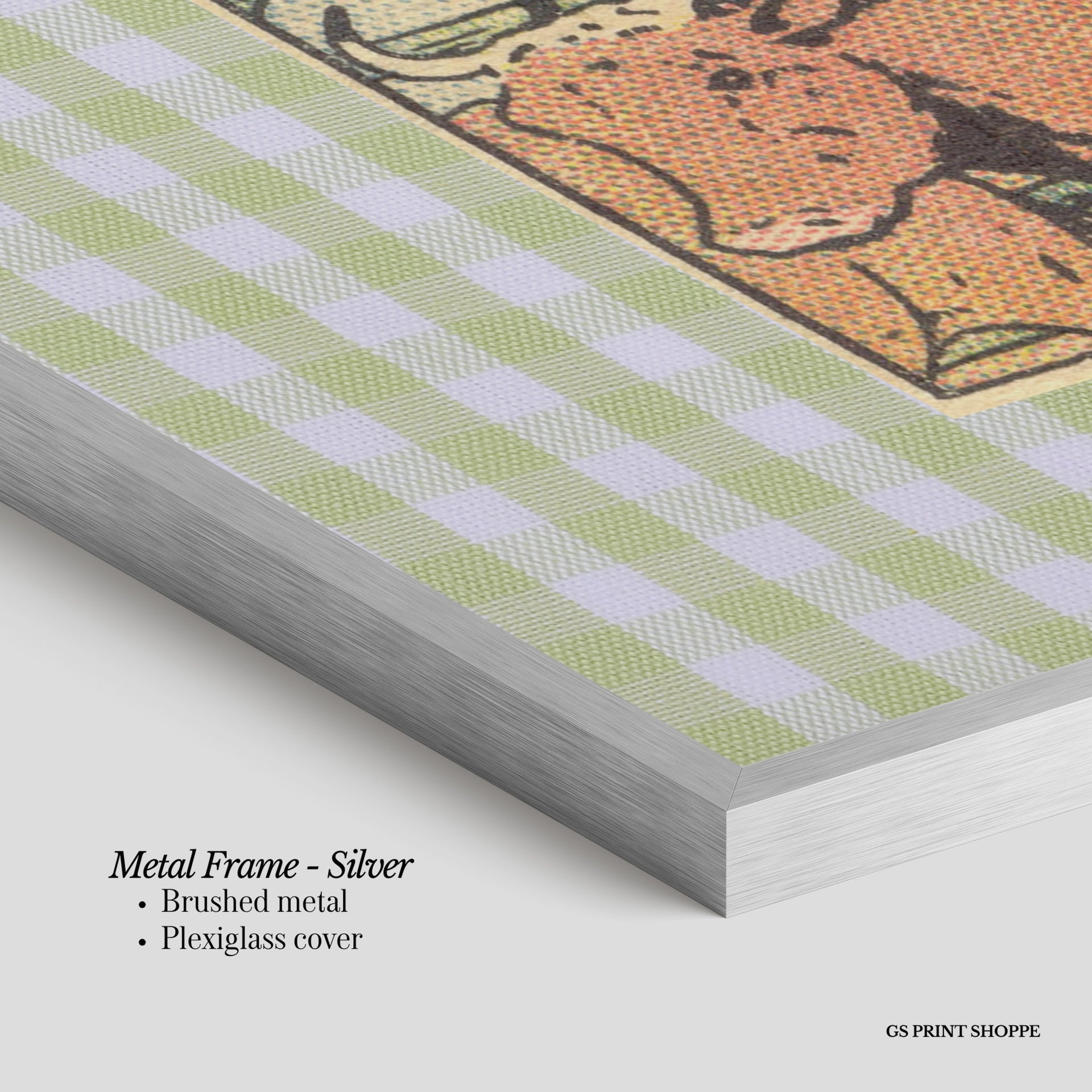 Metal Frame: Sleek and modern, our metal frame is crafted with brushed metal for a polished finish. It comes with durable plexiglass and sturdy metal hangers for horizontal or vertical display.