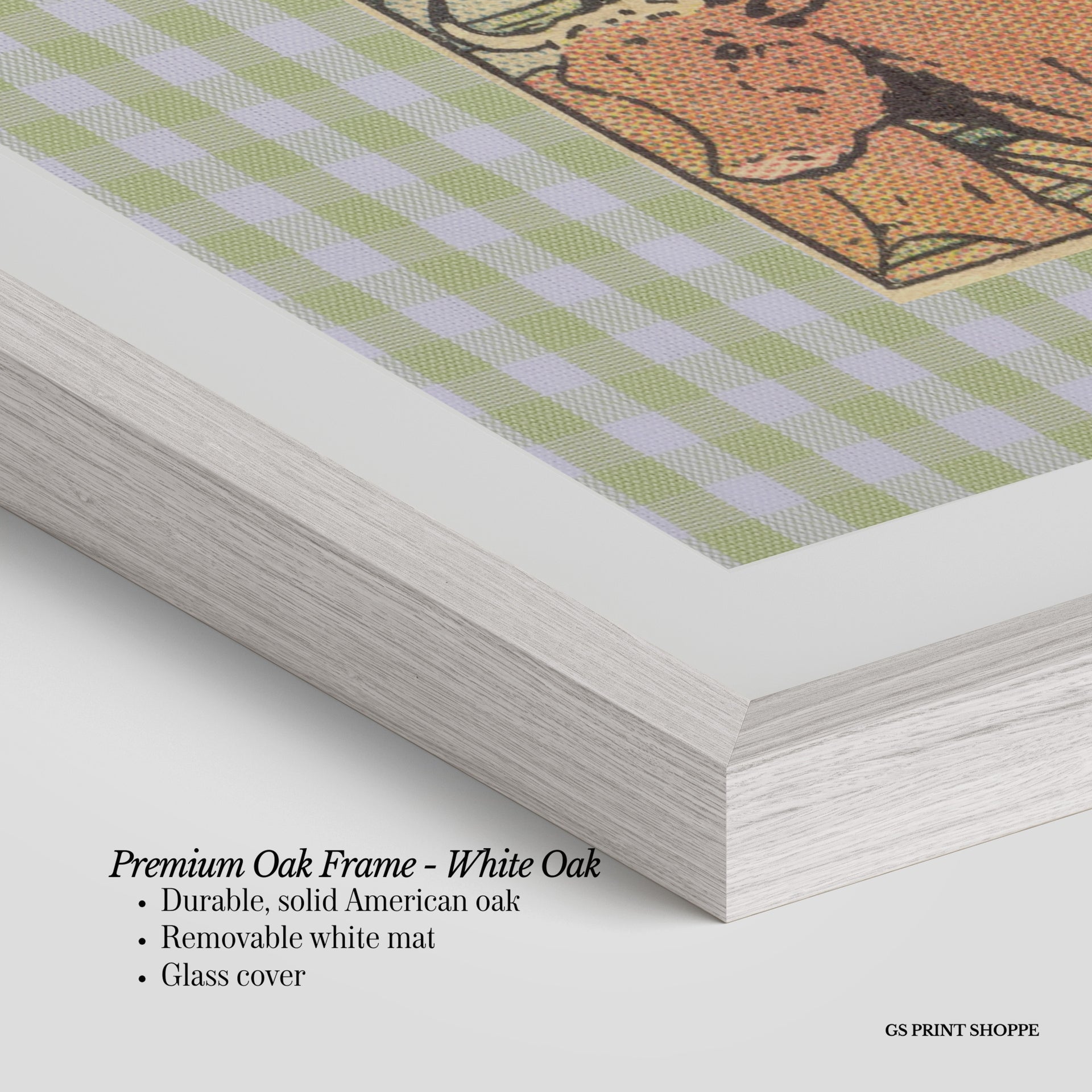 Premium Oak Frame: Our premium oak frame is crafted from solid American oak, offering a warm, natural feel with a high-end finish. We complete this elevated offering with a bright white removable mat and real glass for a versatile and polished look.