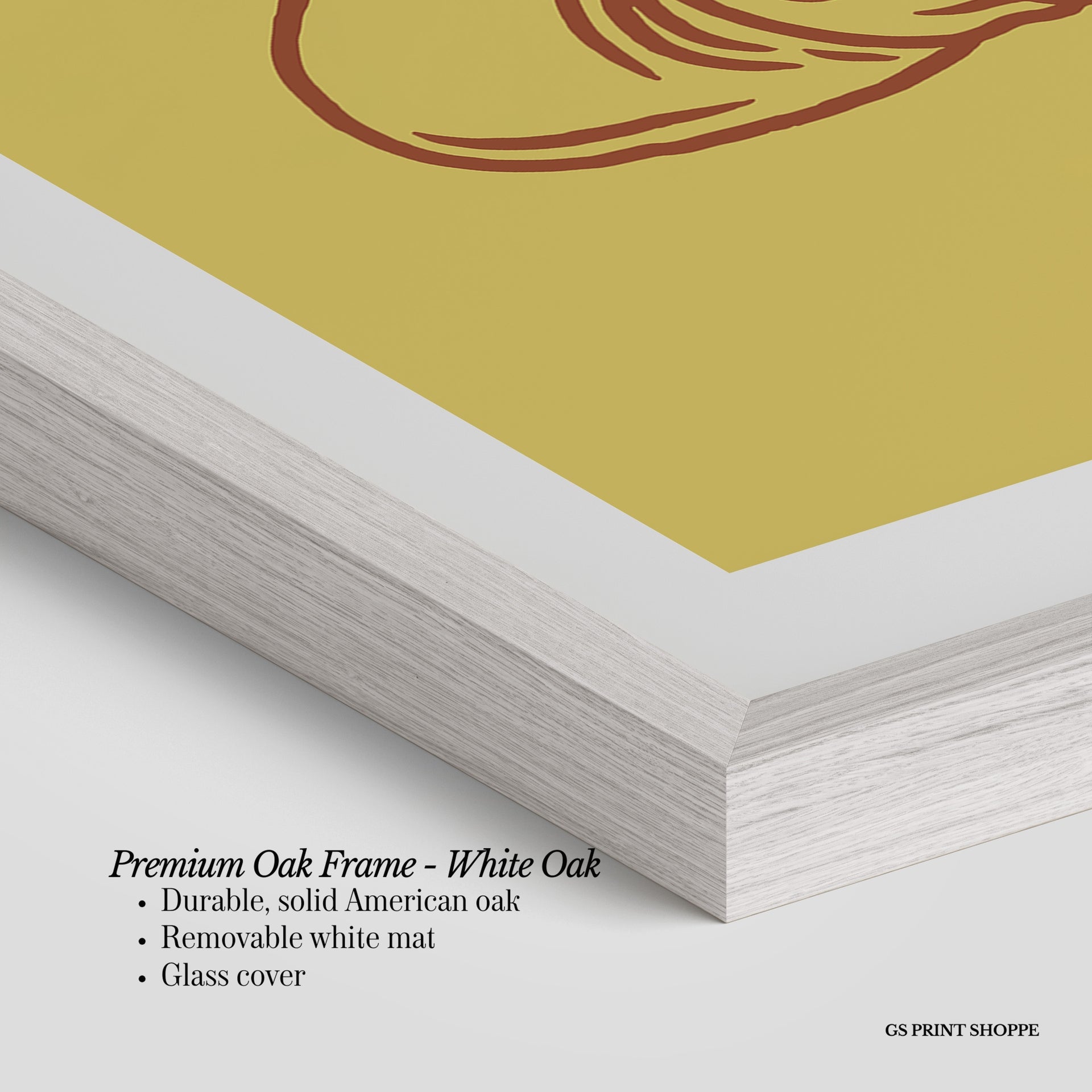 Premium Oak Frame: Our premium oak frame is crafted from solid American oak, offering a warm, natural feel with a high-end finish. We complete this elevated offering with a bright white removable mat and real glass for a versatile and polished look.