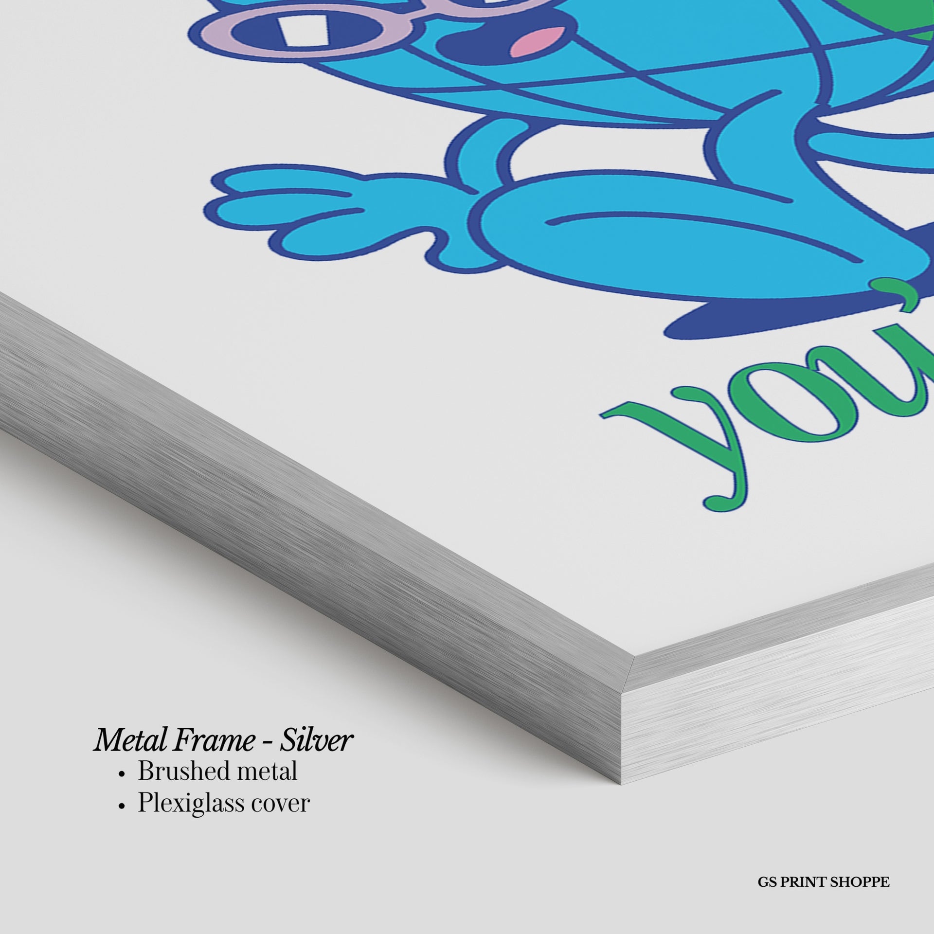 Metal Frame: Sleek and modern, our metal frame is crafted with brushed metal for a polished finish. It comes with durable plexiglass and sturdy metal hangers for horizontal or vertical display.