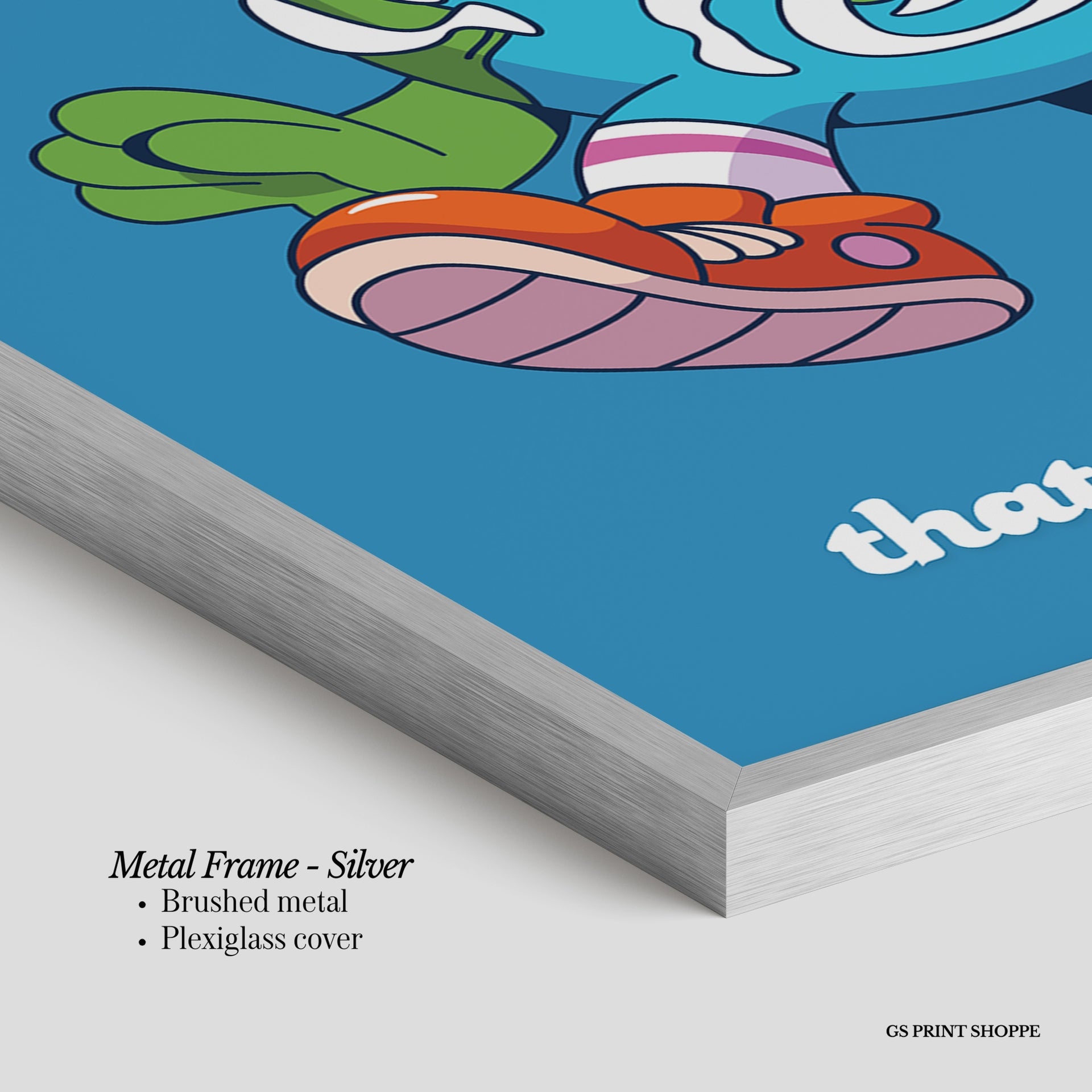 Metal Frame: Sleek and modern, our metal frame is crafted with brushed metal for a polished finish. It comes with durable plexiglass and sturdy metal hangers for horizontal or vertical display.