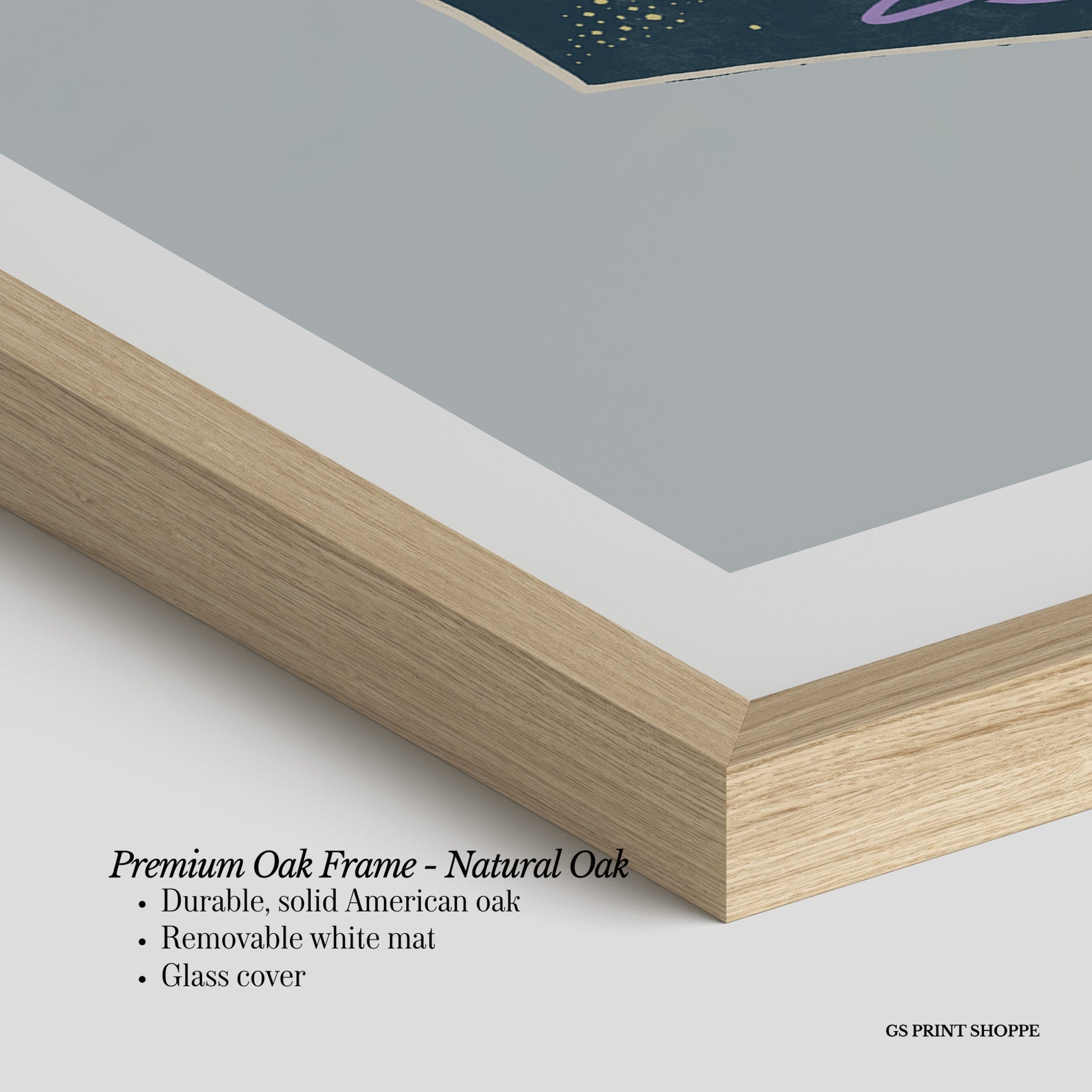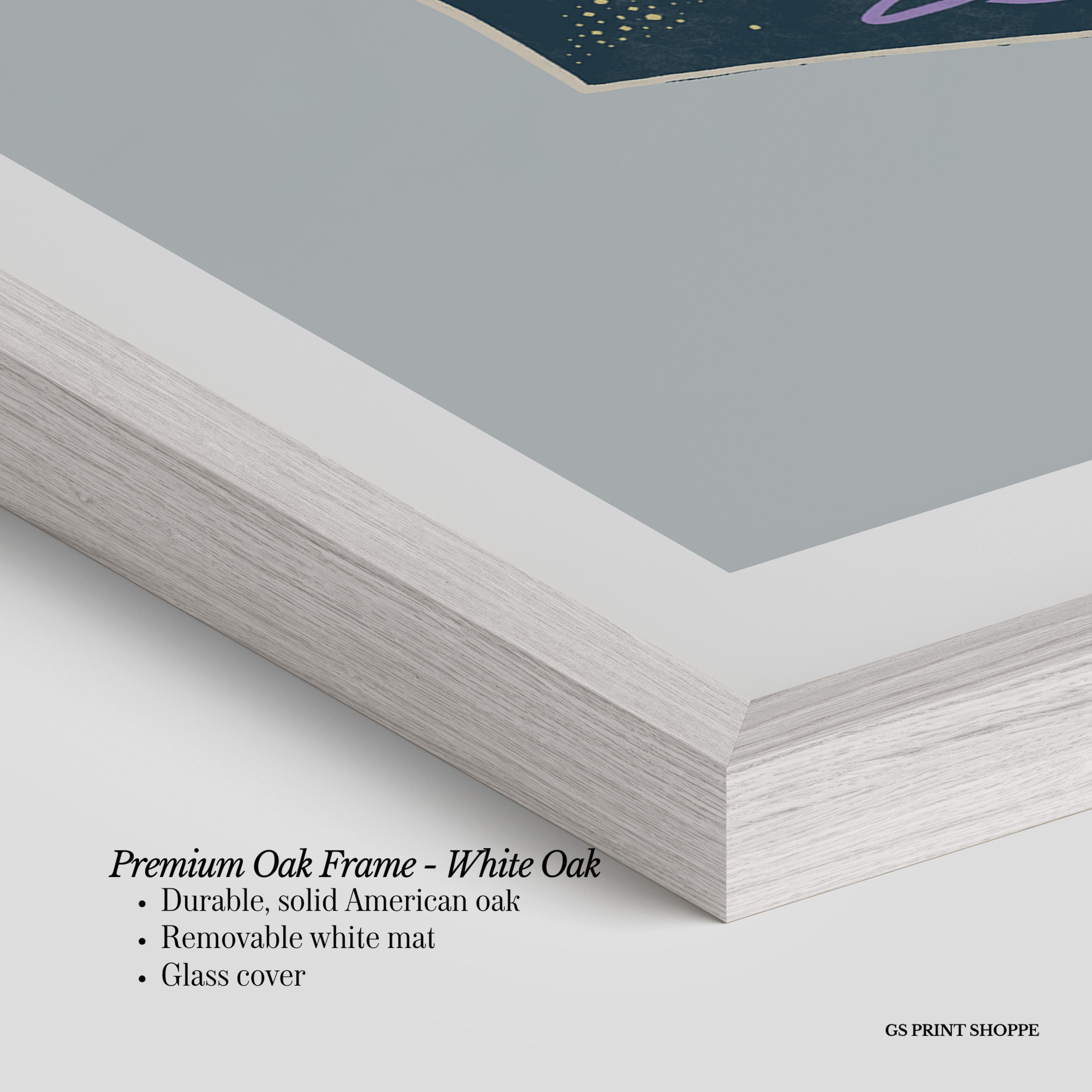 Premium Oak Frame: Our premium oak frame is crafted from solid American oak, offering a warm, natural feel with a high-end finish. We complete this elevated offering with a bright white removable mat and real glass for a versatile and polished look.