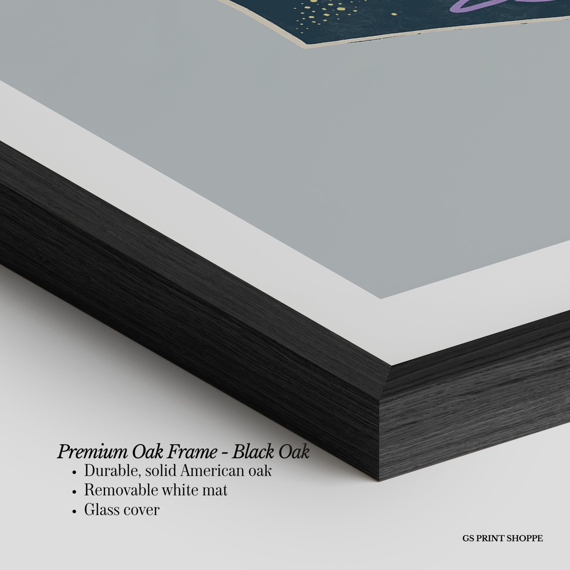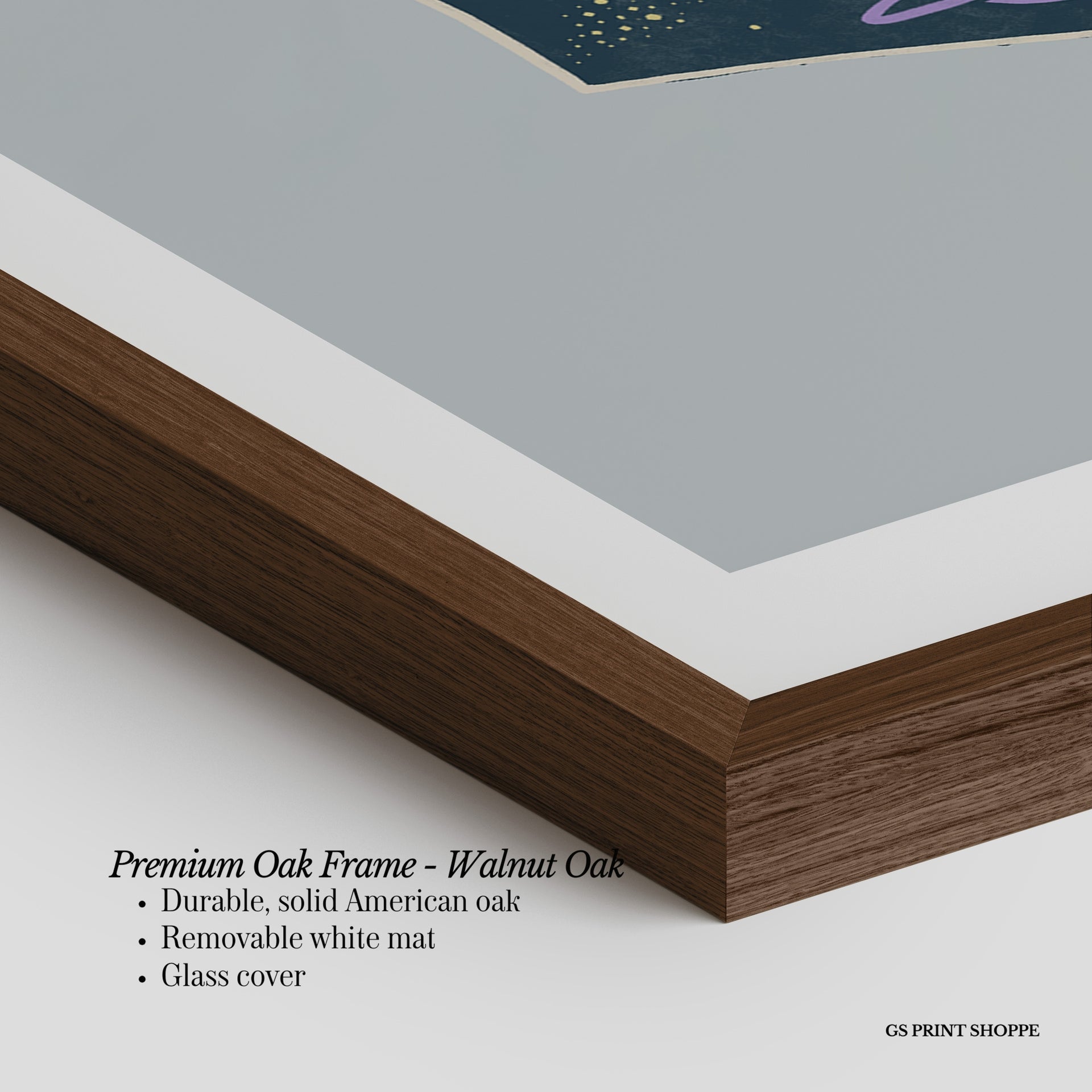 Oak Frame: Our solid oak frame blends durability with timeless appeal. Made from American oak, it features a smooth finish and plexiglass for long-lasting quality.