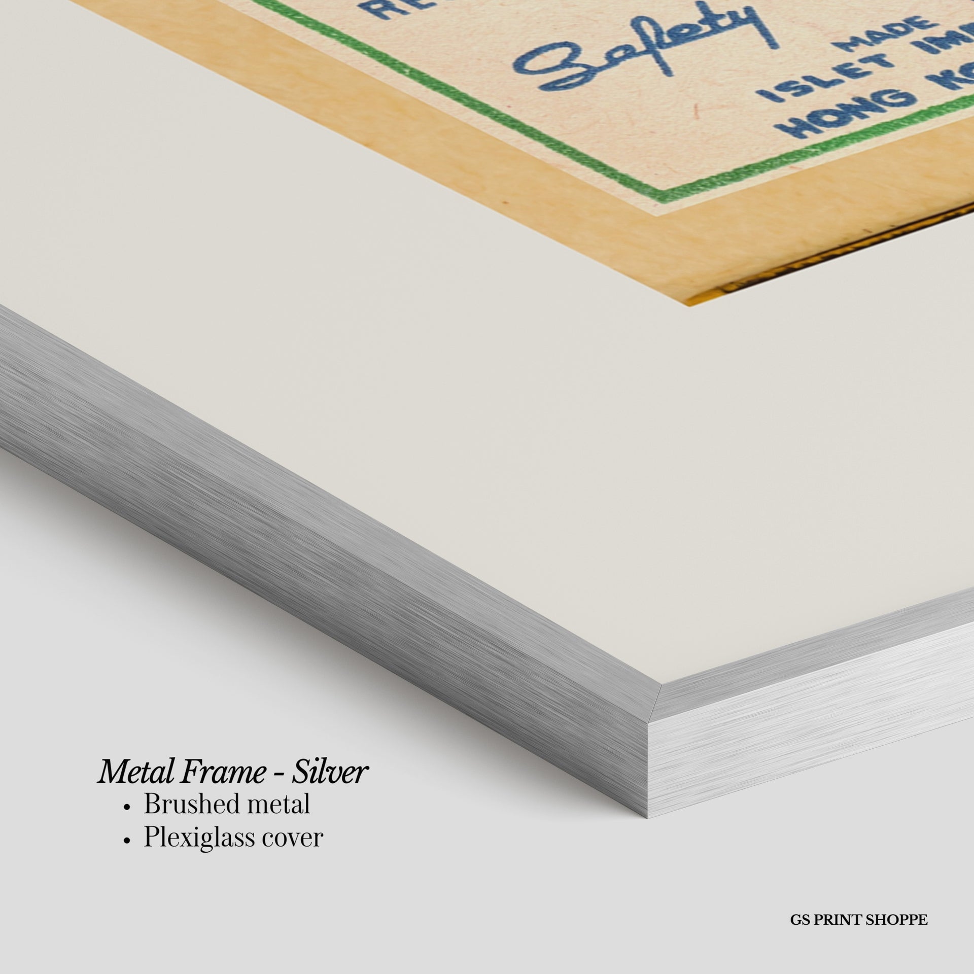 Metal Frame: Sleek and modern, our metal frame is crafted with brushed metal for a polished finish. It comes with durable plexiglass and sturdy metal hangers for horizontal or vertical display.